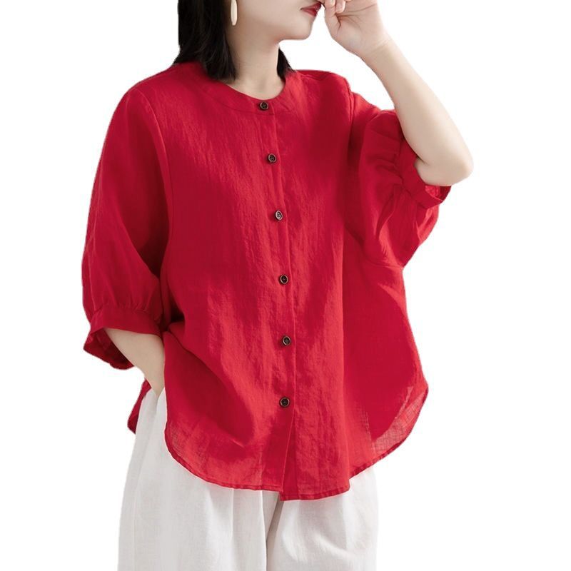 | nameOriginal | 2023 Summer cotton and linen shirt Women's lantern sleeve retro artistic top loose slimming half sleeve plus size shirt Women's |