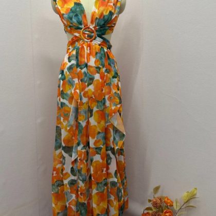 | nameOriginal | 2023 Summer European and American Amazon cross-border foreign trade new fashion pastoral printed backless sexy sling large swing skirt |