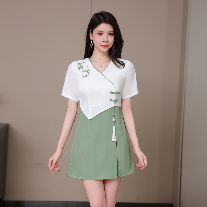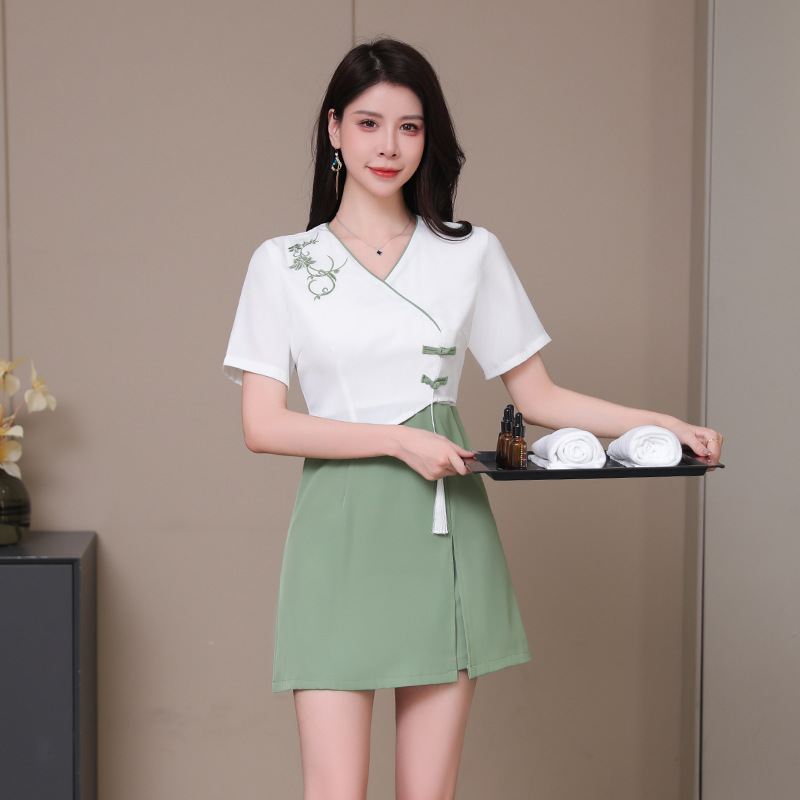 2023 Summer Foot Bath Technician Work Clothes Women's Foot Therapy Shop Health Hall Ear Collection SPA Club Temperament Skirt Set