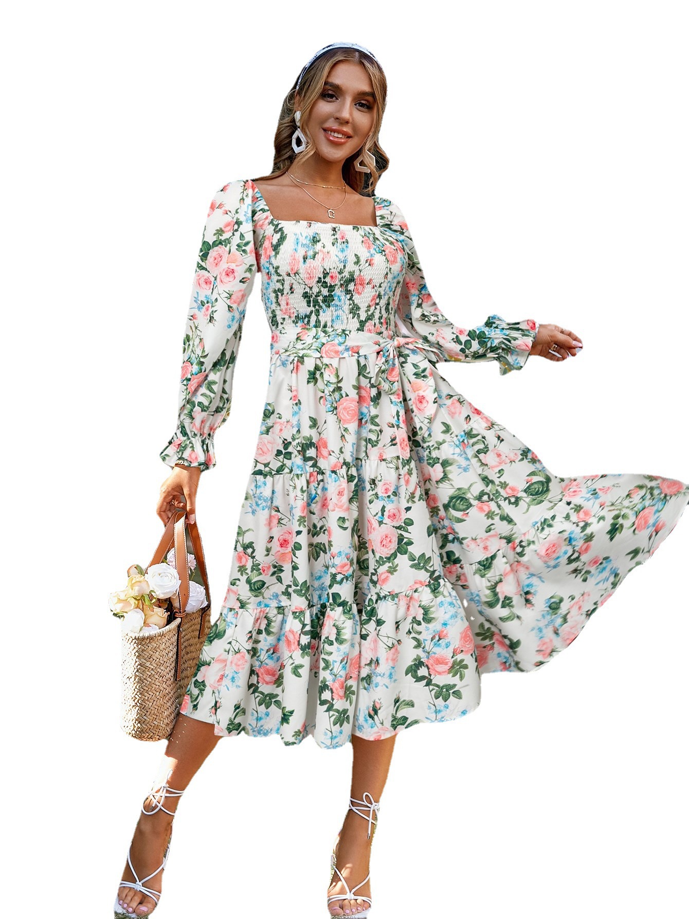 | nameOriginal | 2023 Summer new AliExpress Europe and the United States cross-border trade square collar Horn long sleeve high waist dress loose dress |