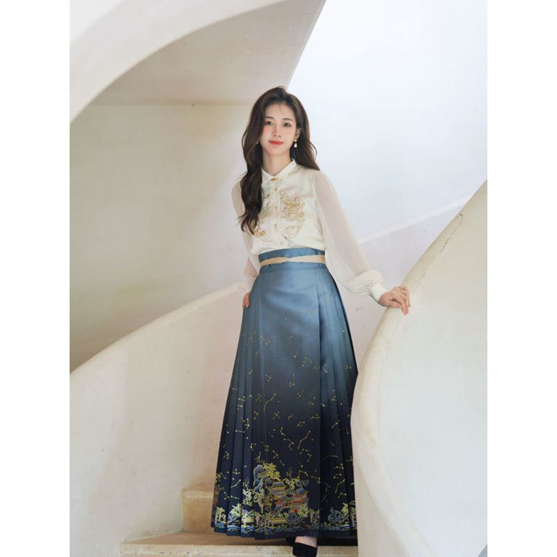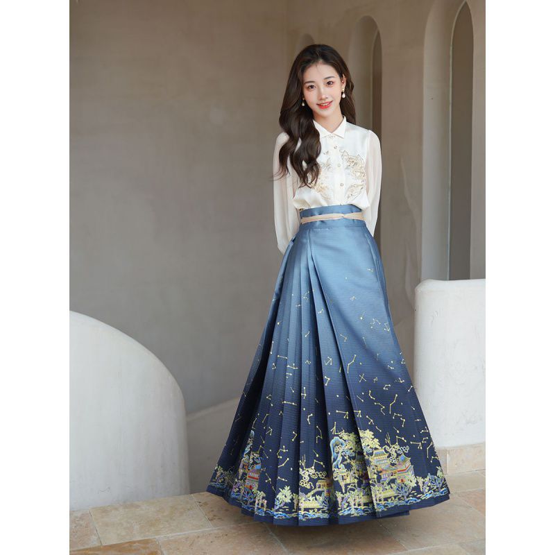 | nameOriginal | 2023 Summer New Artistic Everyday Elegant Elegant Chinese Style Improved Hanfu Han Yuan Su Ming Made Horse Face Skirt |