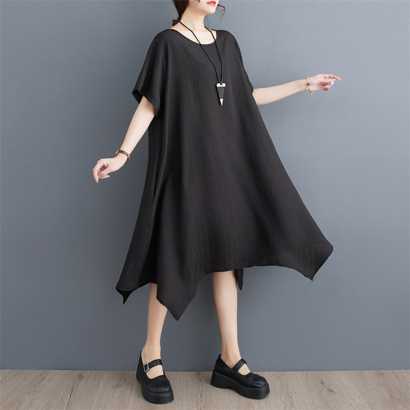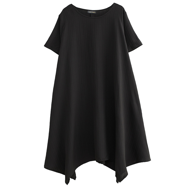| nameOriginal | 2023 Summer new chubby girl solid color round neck pullover irregular mid-length solid color plus size slimming dress |