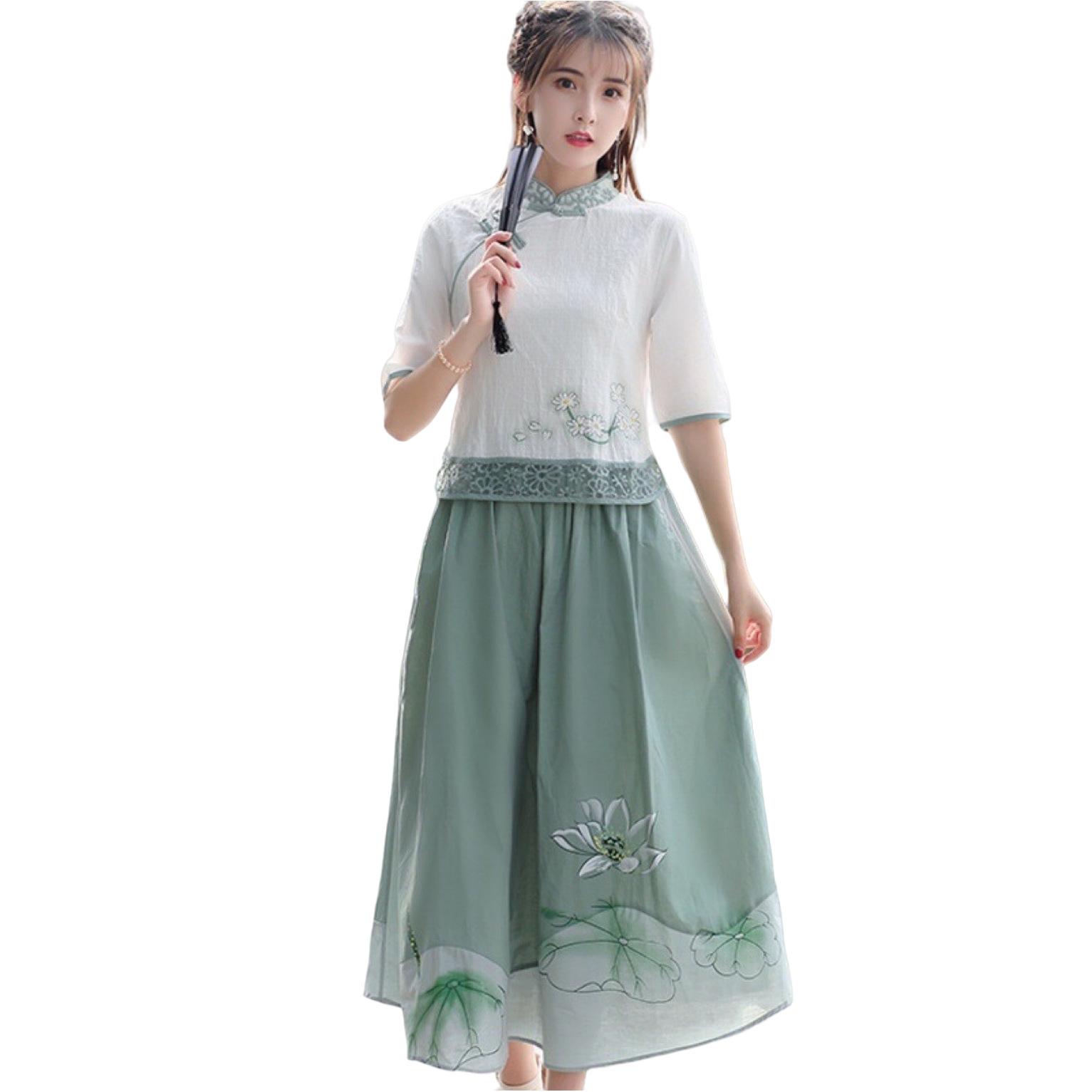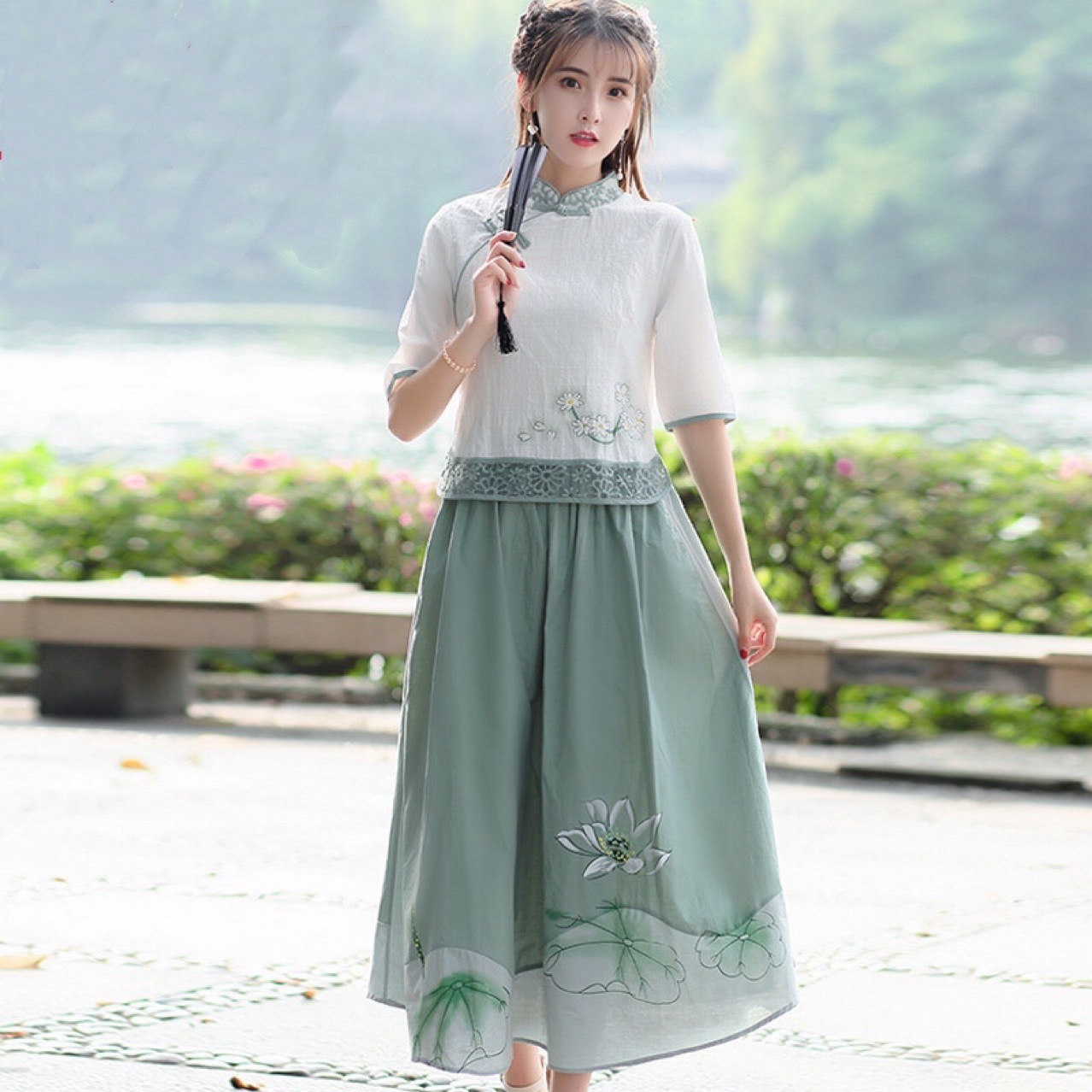 2023 Summer New Cotton and Linen Modified Republic of China Style Hanfu Fresh Artistic Girl Suit