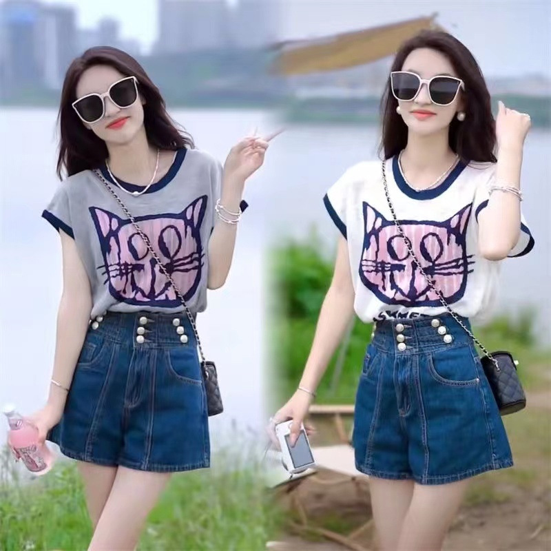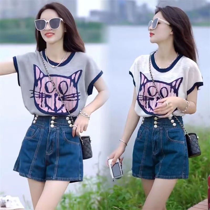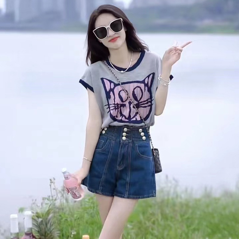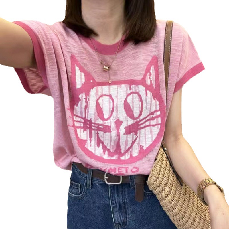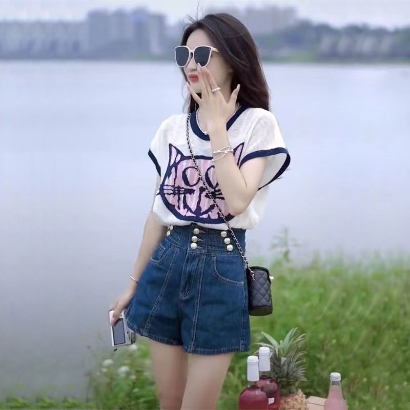 | nameOriginal | 2023 Summer New Design Cool Silk Crew Neck T-shirt Women's Stitching Printed Korean Casual Top All-match Short-sleeve |