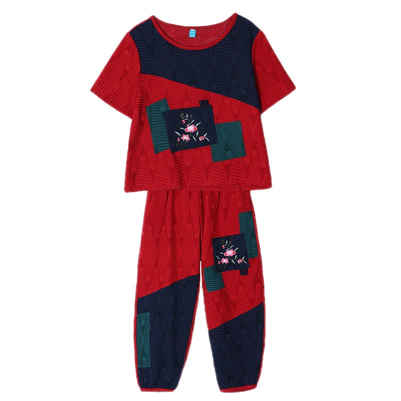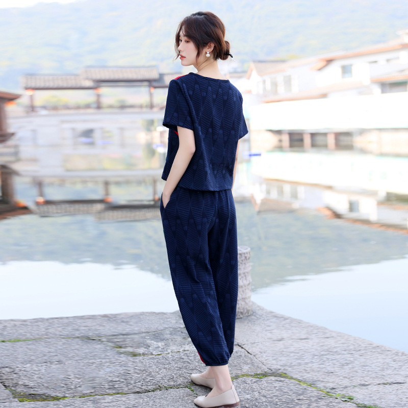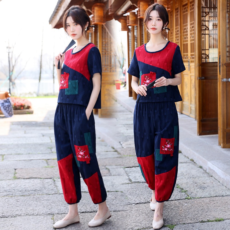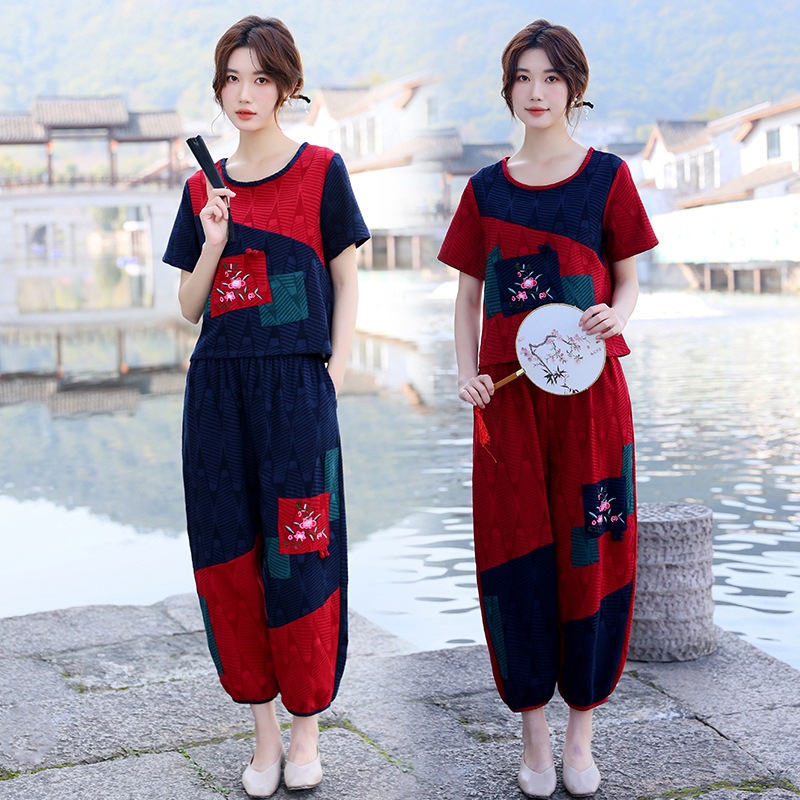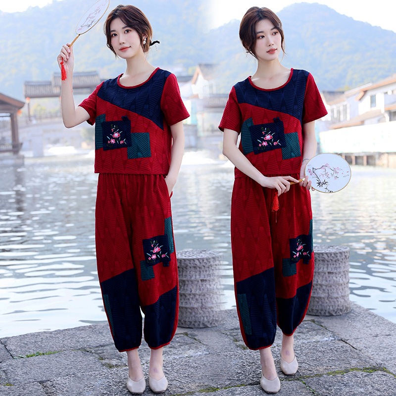 | nameOriginal | 2023 Summer New Ethnic Style Cotton Linen Color Matching Jacquard Round Neck Embroidered Loose Short-sleeved Women's Top Pants Set |