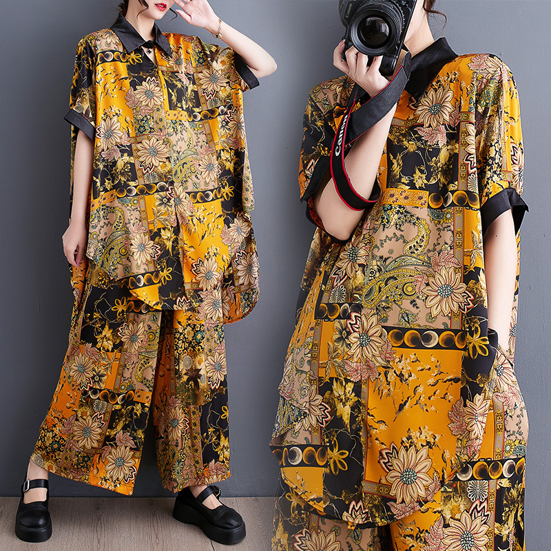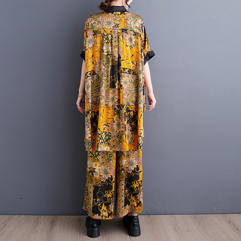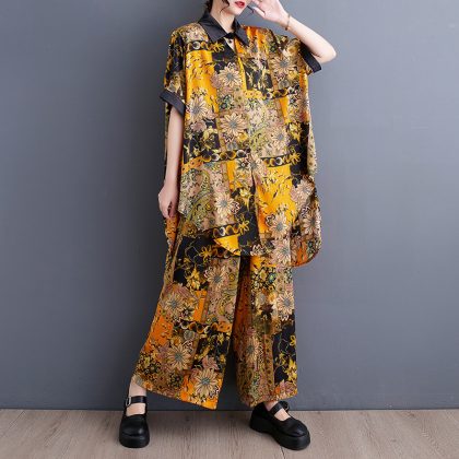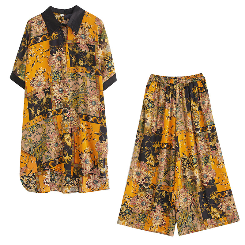 | nameOriginal | 2023 Summer New Ethnic Style Printed Contrast Color Mid-length Shirt Loose Wide-leg Pants Two-piece Suit |