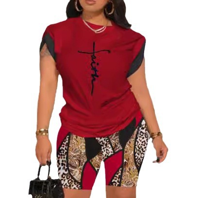 | nameOriginal | 2023 Summer new European and American women's clothing Amazon temperament commuter pants round neck color matching printing positioning short sleeve suit |