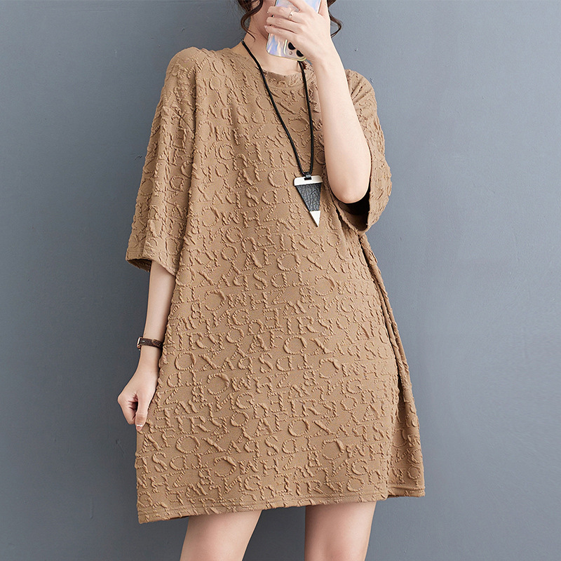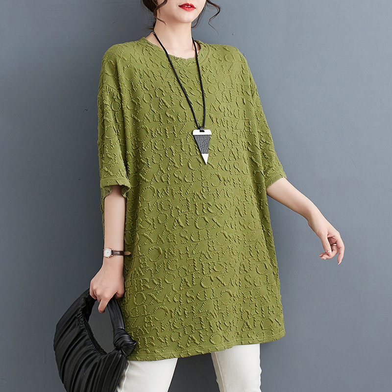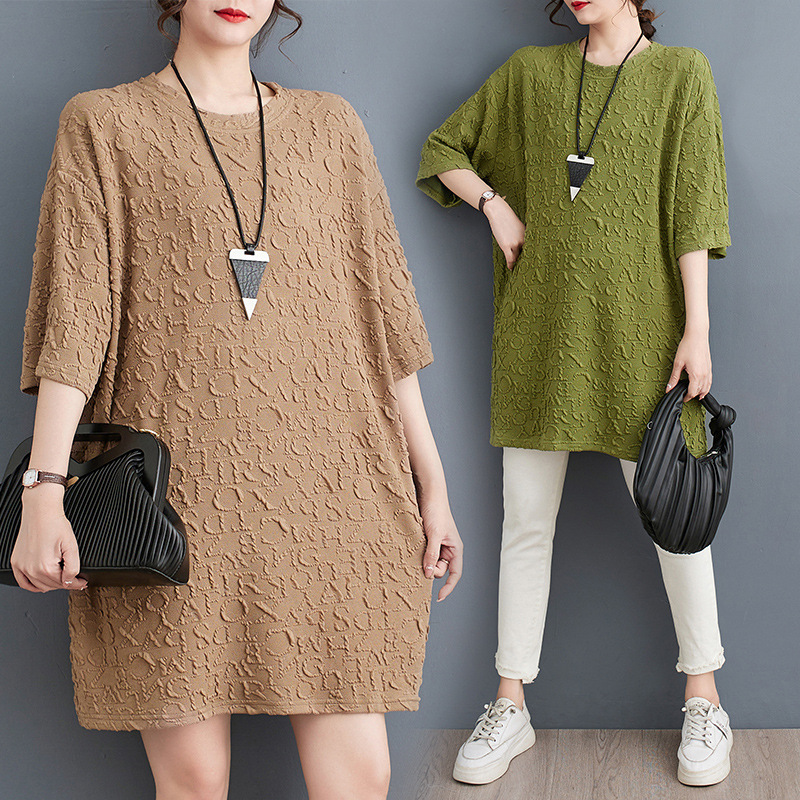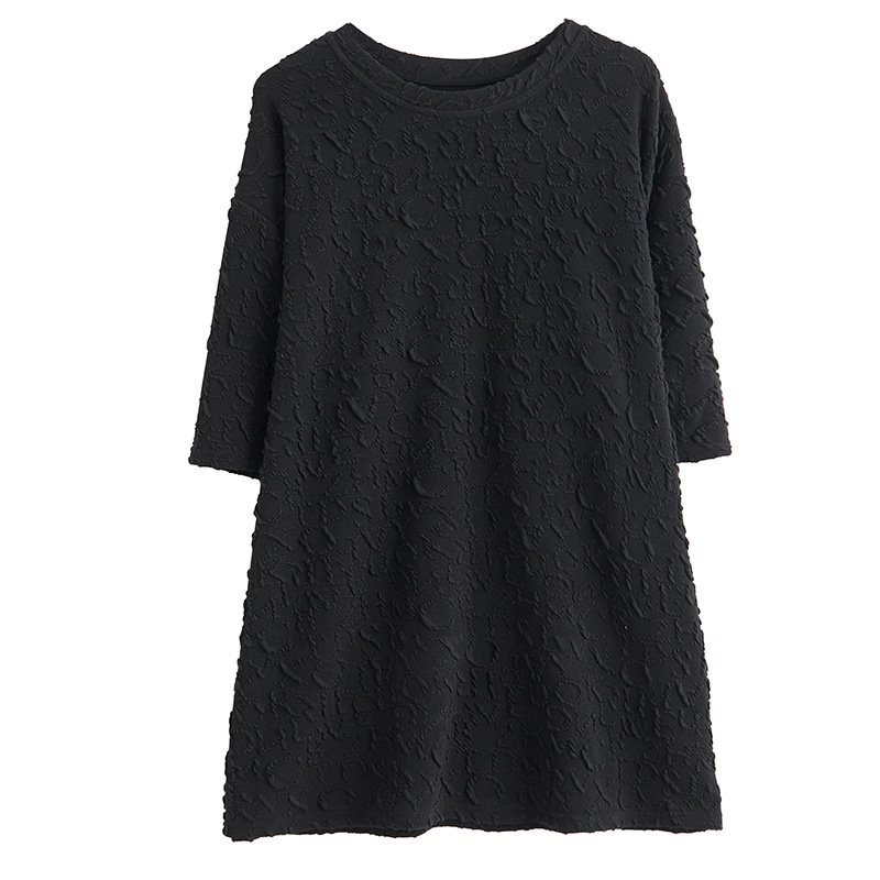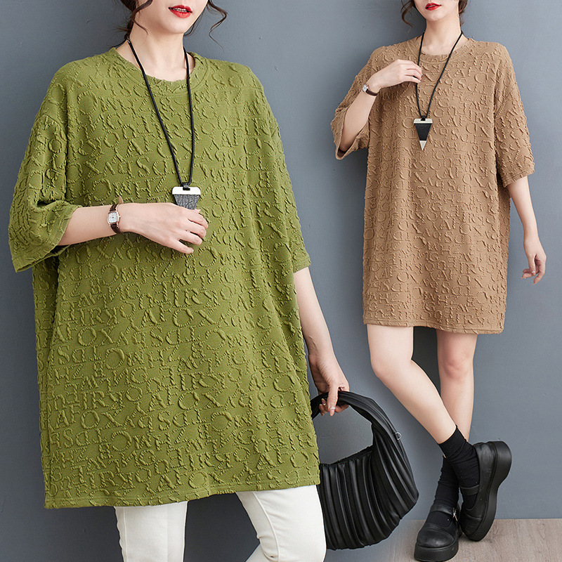 2023 Summer New Fat Girl Loose Casual Round Neck Pullover Dark Pattern Printed Large Size Short Sleeve T-shirt