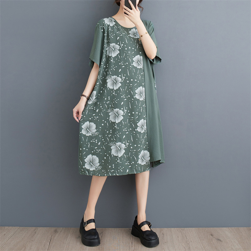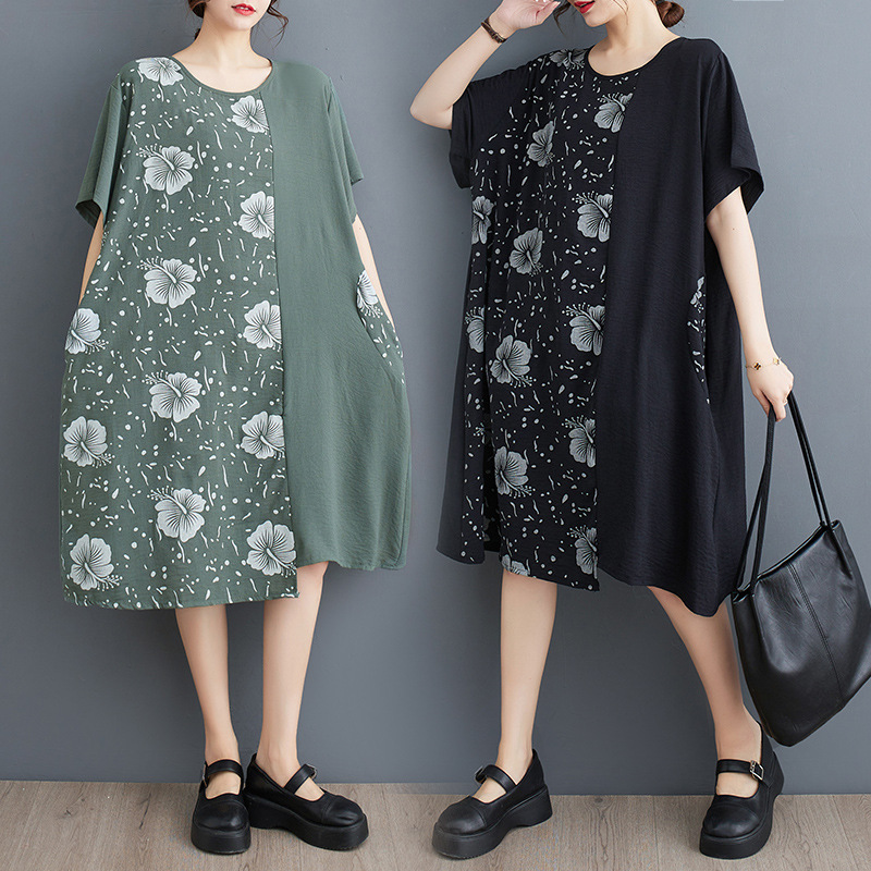 | nameOriginal | 2023 Summer new fat mm200 kg extra large size fashion stitching contrast loose casual long dress |