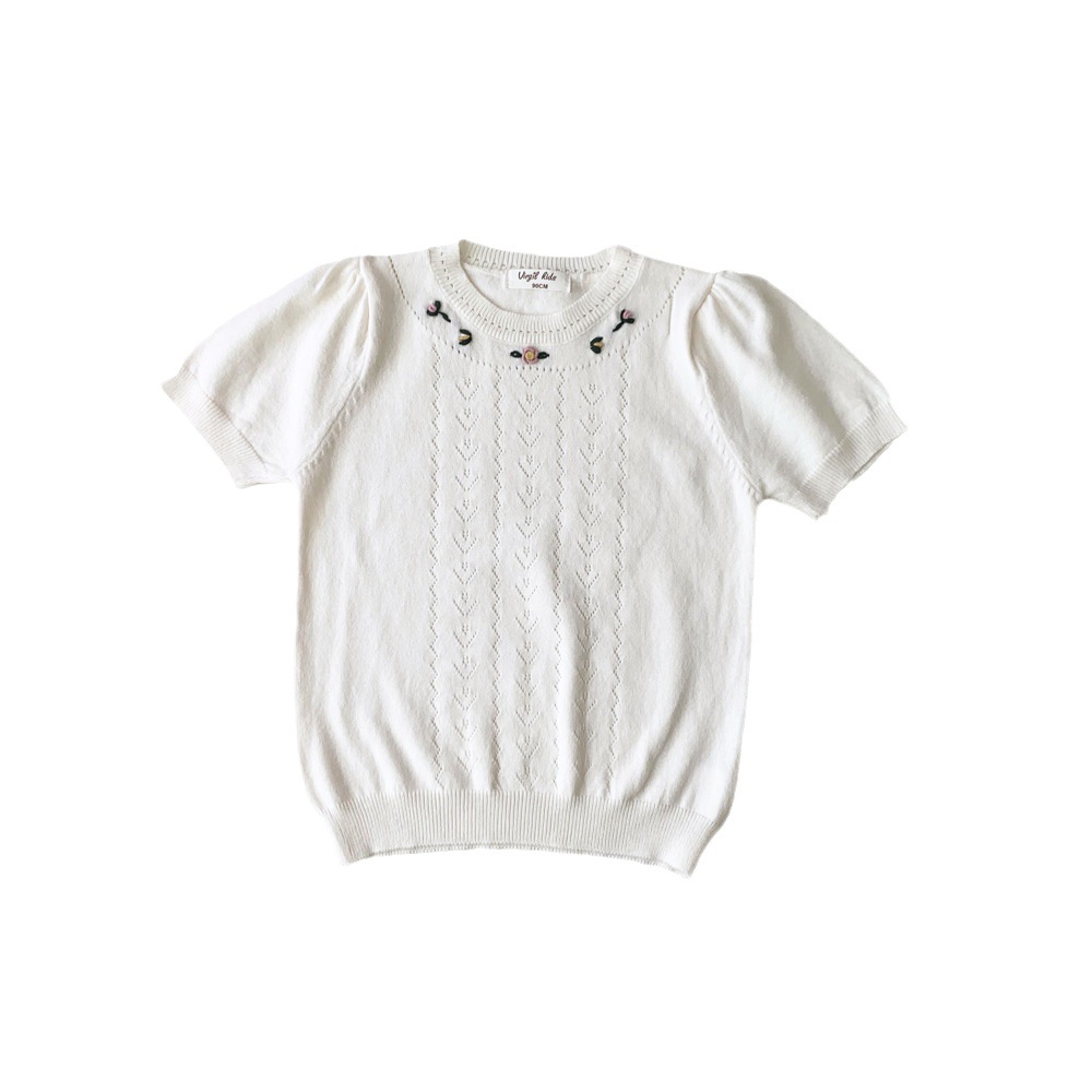 | nameOriginal | 2023 Summer New Girls' Cotton Yarn Short-sleeved Knitted Sweater Hollow Thin Threading Handmade Embroidered Short-sleeved Knitted Sweater |
