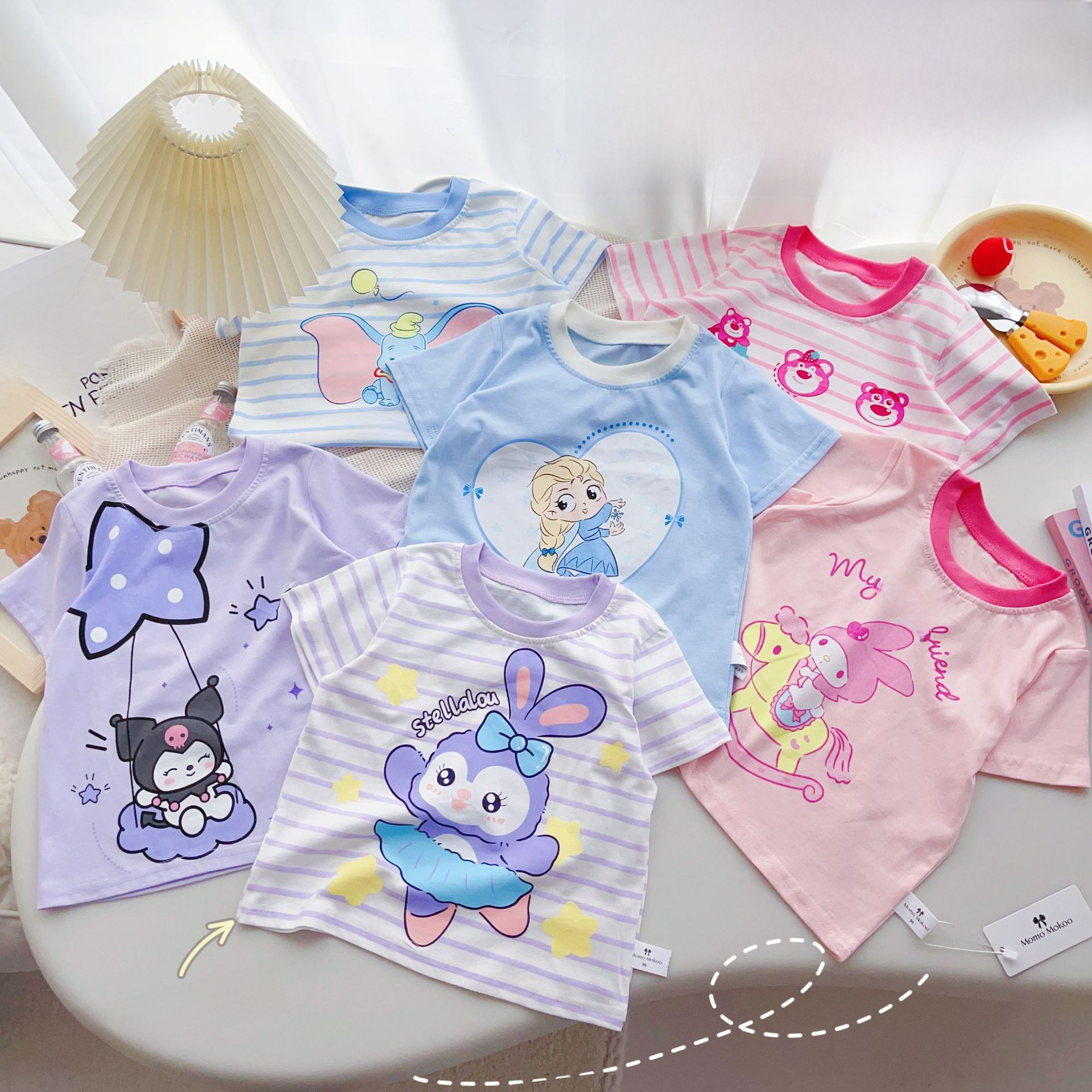 | nameOriginal | 2023 Summer New Girls' Short-sleeved T-shirt Children's Cotton Short-sleeved Top t Striped Out Cute Cartoon |