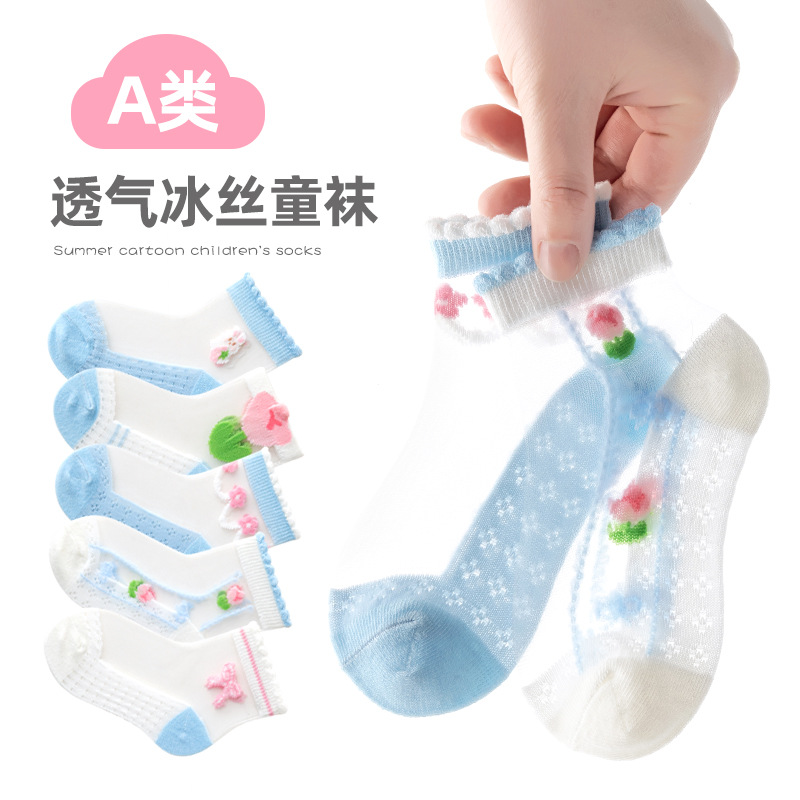 | nameOriginal | 2023 Summer new Ice Silk children's socks cartoon thin glass silk socks large boys and girls socks wholesale |