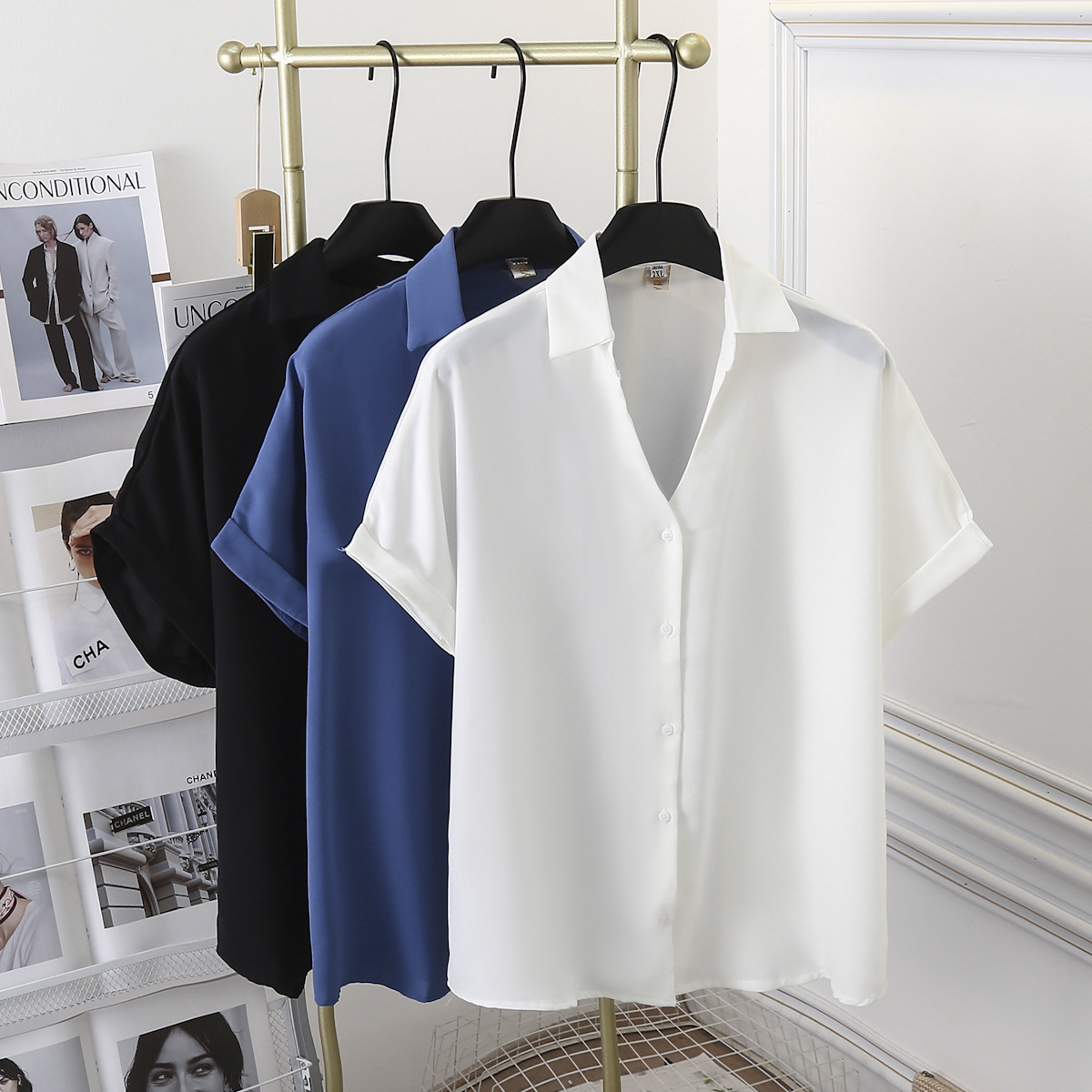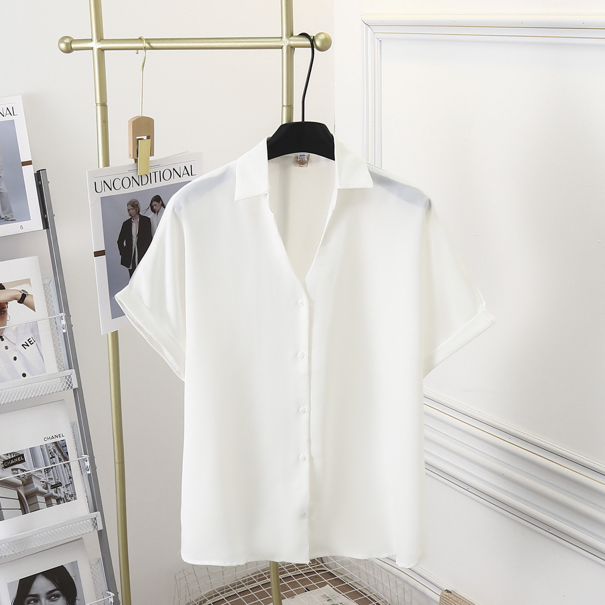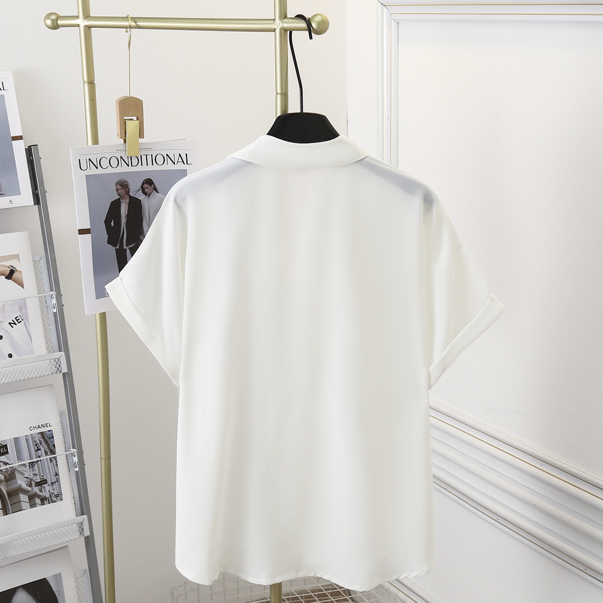 2023 Summer new Korean version of 200kg fat MM simple V collar short sleeve shirt Joker jacket plus size women’s 7663