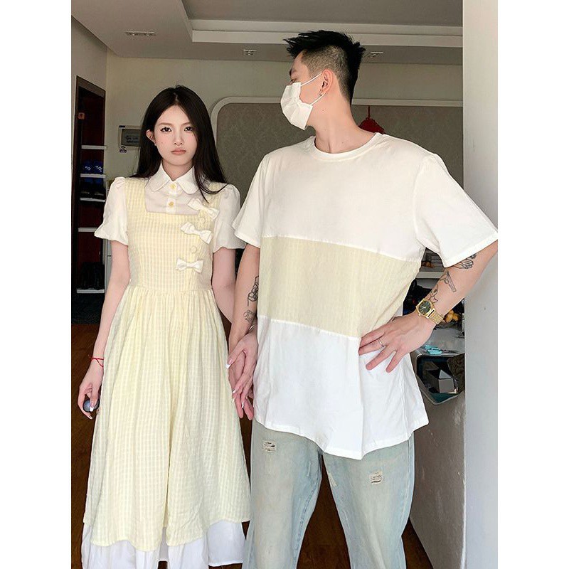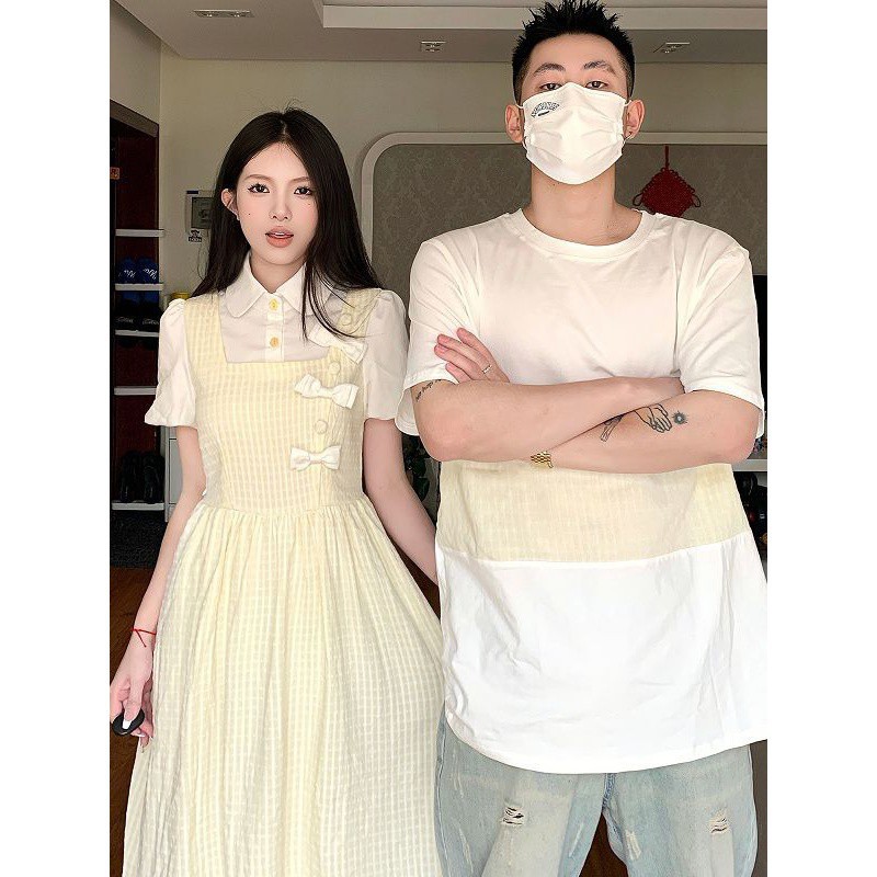 | nameOriginal | 2023 Summer new niche design sweet short-sleeved women's fake two-piece dress long dress men's T-shirt couple wear |