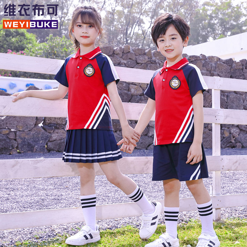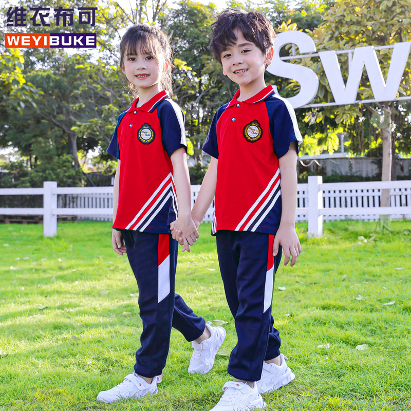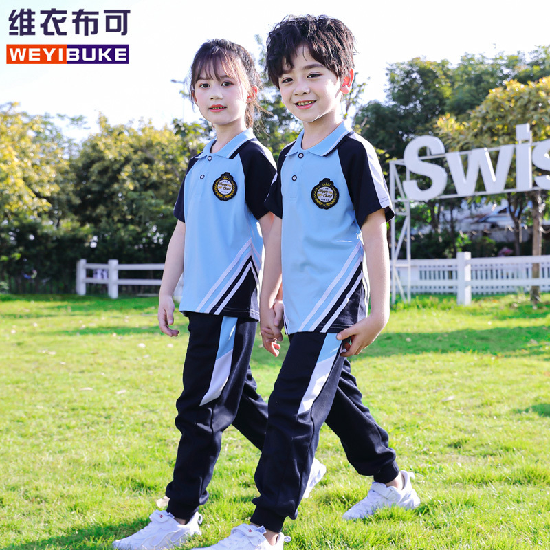 2023 Summer New Primary School Clothes Cotton Short-sleeved Sports Suit Kindergarten Garden Clothes Children’s Class Clothes Spot