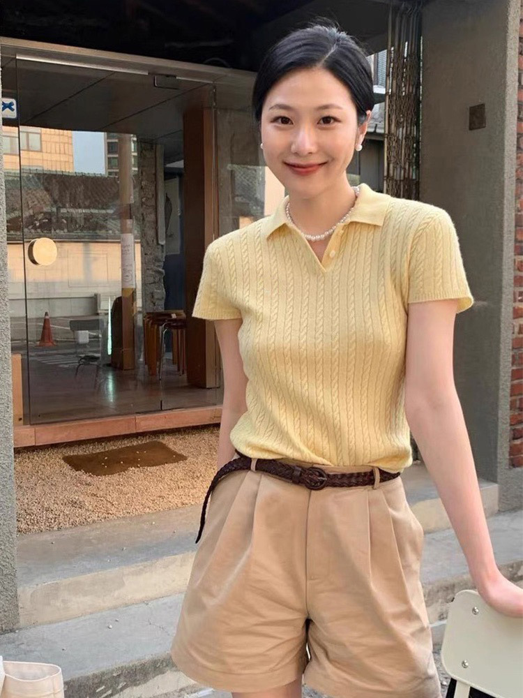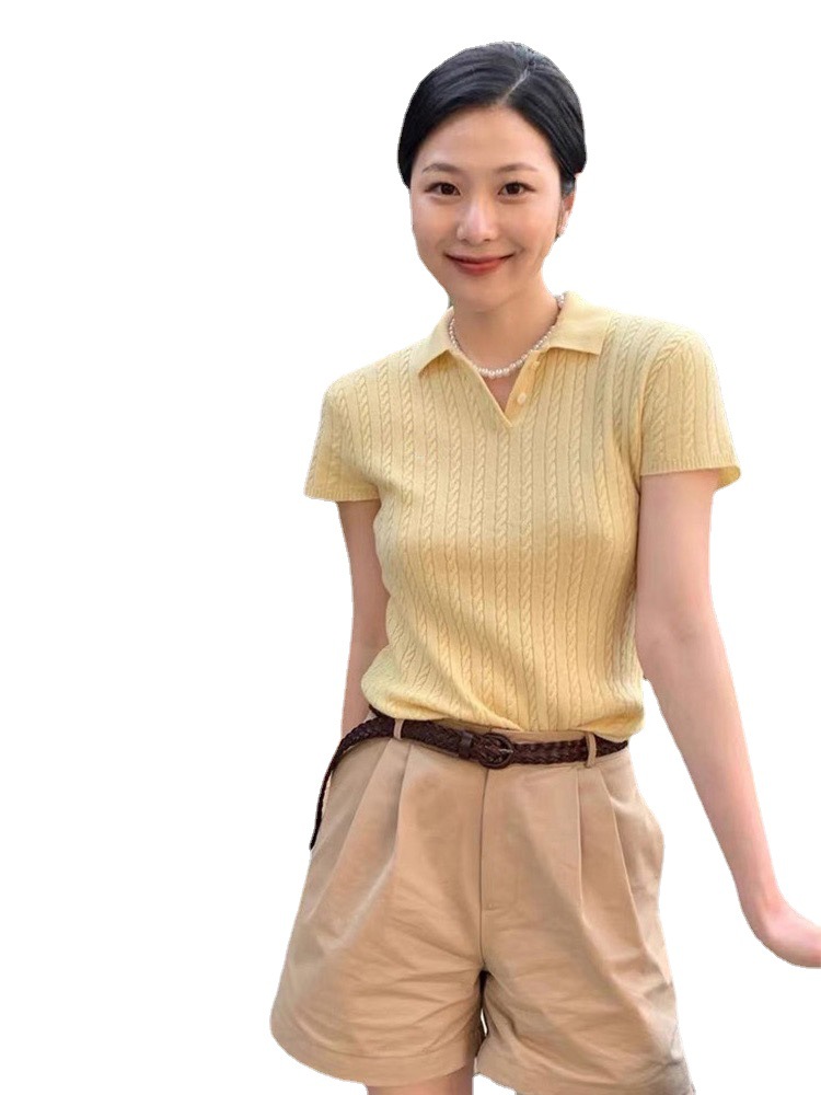 2023 Summer new Ruff horse embroidered small horse logo slim-fit fine twist sweater short-sleeved T-shirt polo shirt