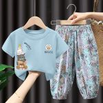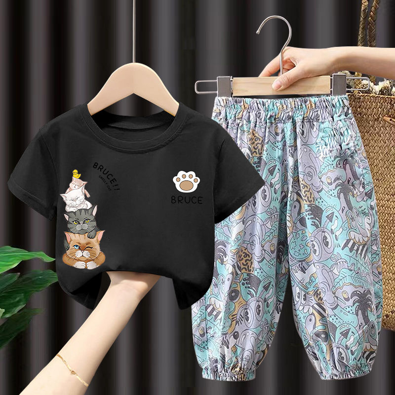 | nameOriginal | 2023 Summer new short-sleeved cotton girls' suit children's western style mosquito-proof trousers boys' fashionable two-piece suit |