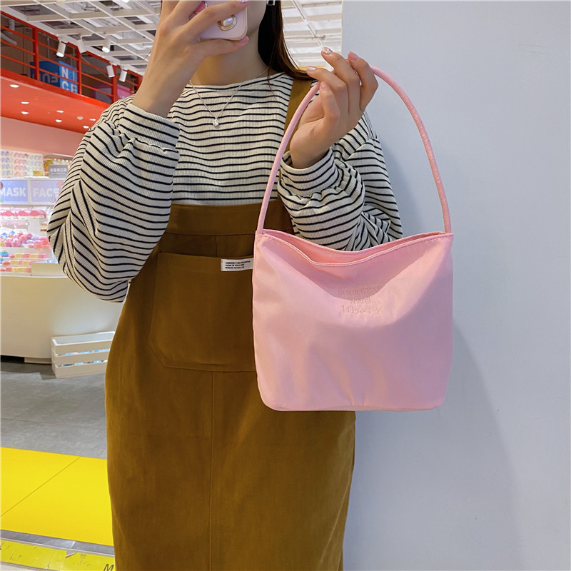 nameOriginal | 2023 Summer new simple nylon underarm bag South Korea niche design letter embroidery portable commuter bucket bag |