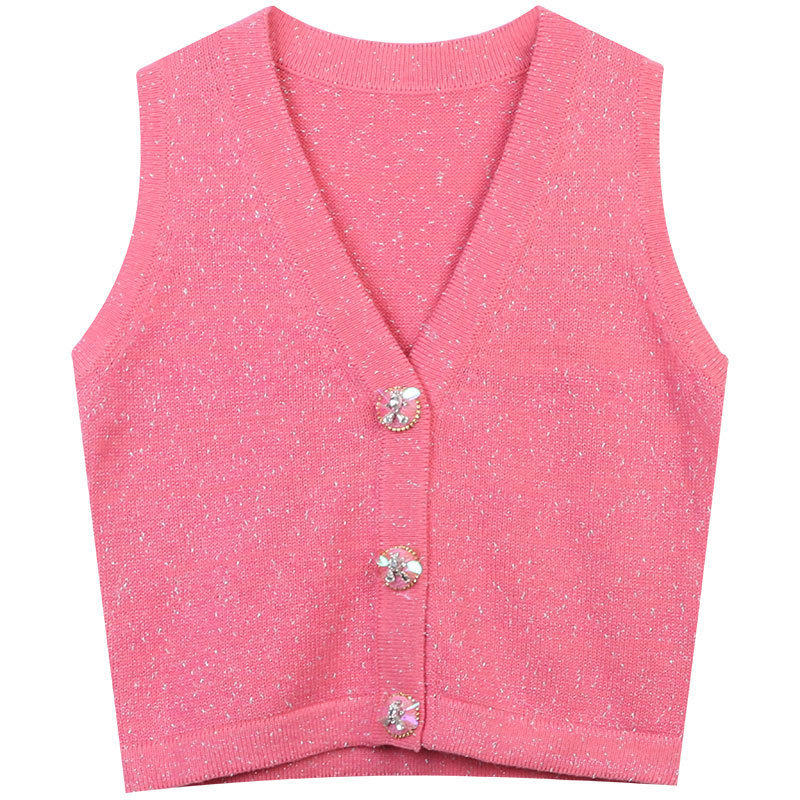 | nameOriginal | 2023 Summer New Solid Color Metal Three-Dimensional Sequin Embroidered Elegant Casual Short V-Neck Knitted Vest Cardigan |