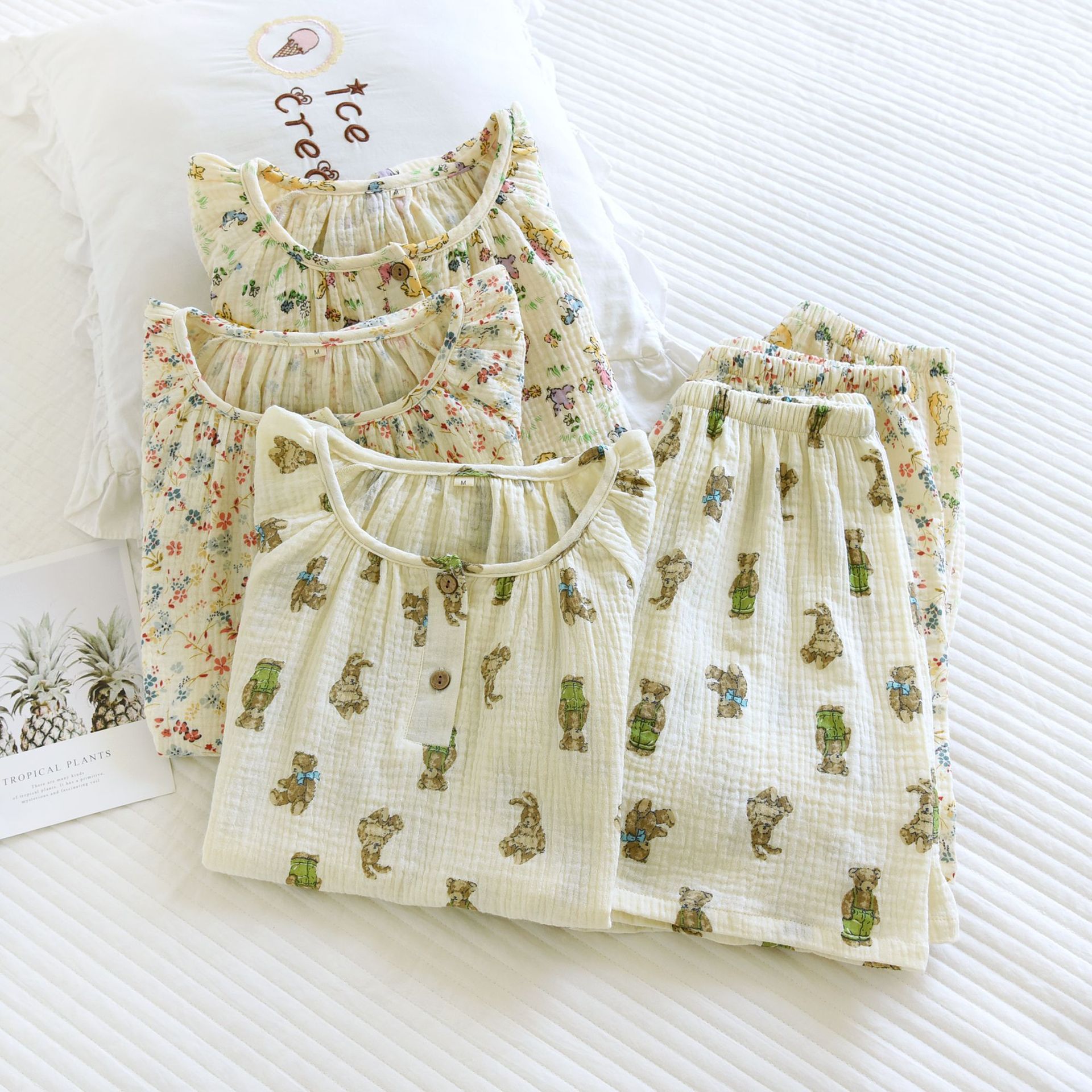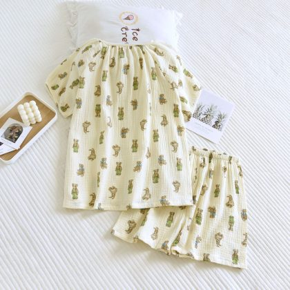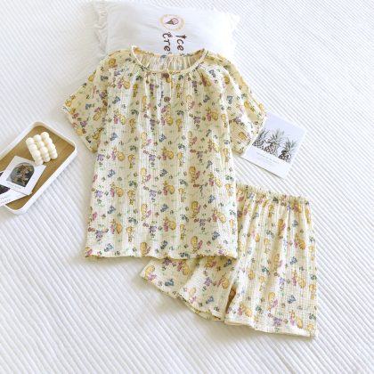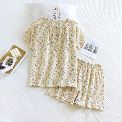 2023 Summer New Style Crepe Short-sleeved Shorts Double-layer Cotton Yarn Women’s Home Clothes Summer Fresh Pajamas Set