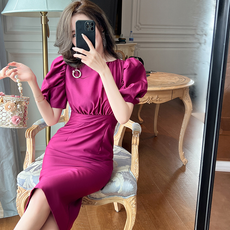 | nameOriginal | 2023 Summer New Women's Elegant Elegant Puff Sleeve Tight Waist Slim-fit Noble Purple Dress 50159 |