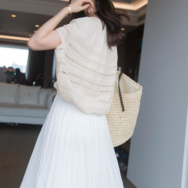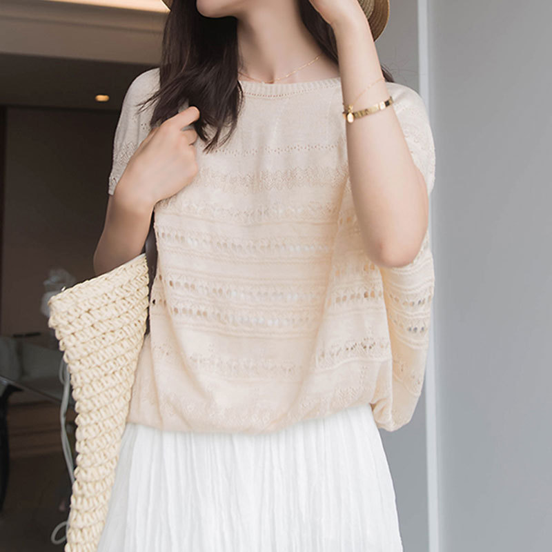 | nameOriginal | 2023 Summer New Women's Loose Casual Apricot Top Age-Reducing Hollow Ice Silk Knitted Shirt Short-Sleeved T-Shirt |