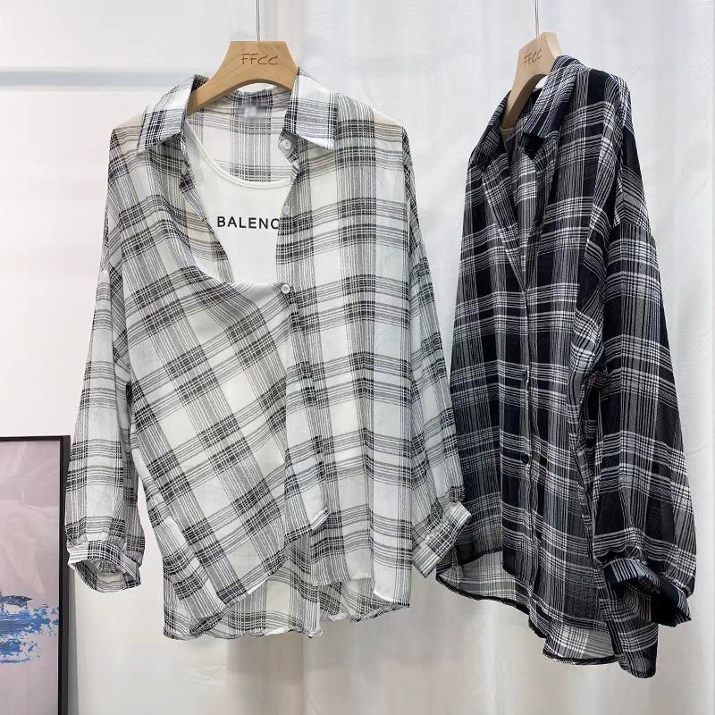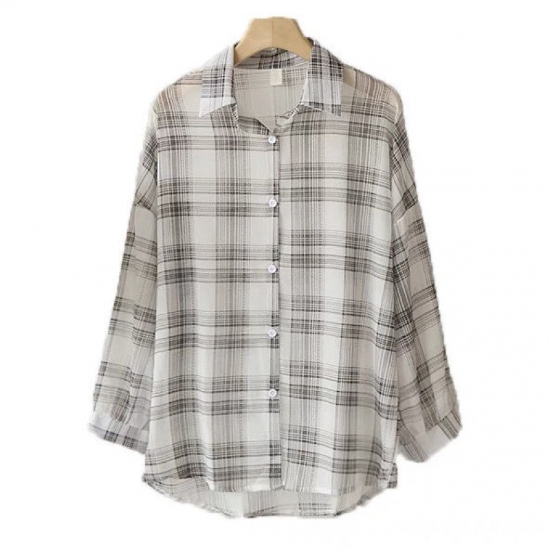 | nameOriginal | 2023 Summer New Women's Plaid Shirt Design Niche Loose Draping Chiffon Shirt Sunscreen Shirt Top |