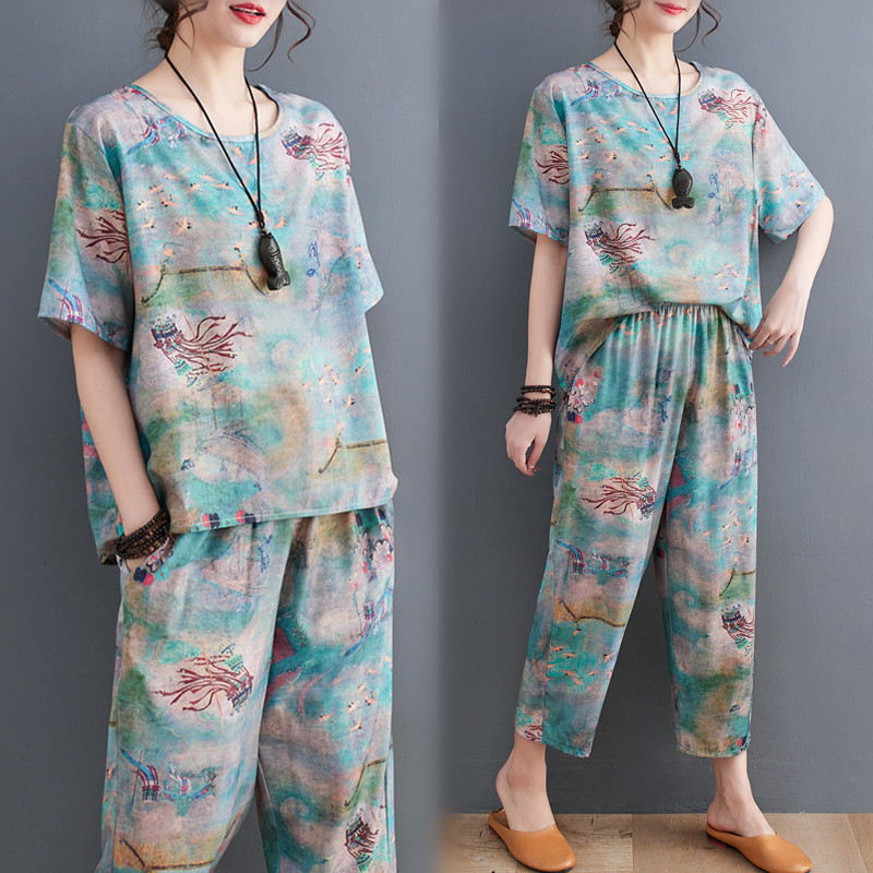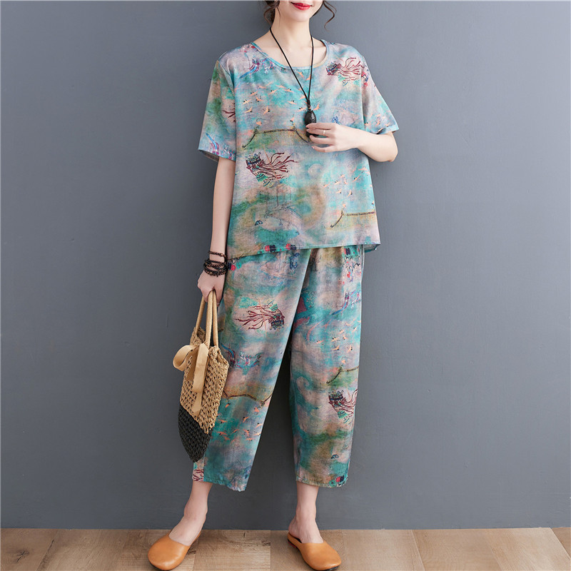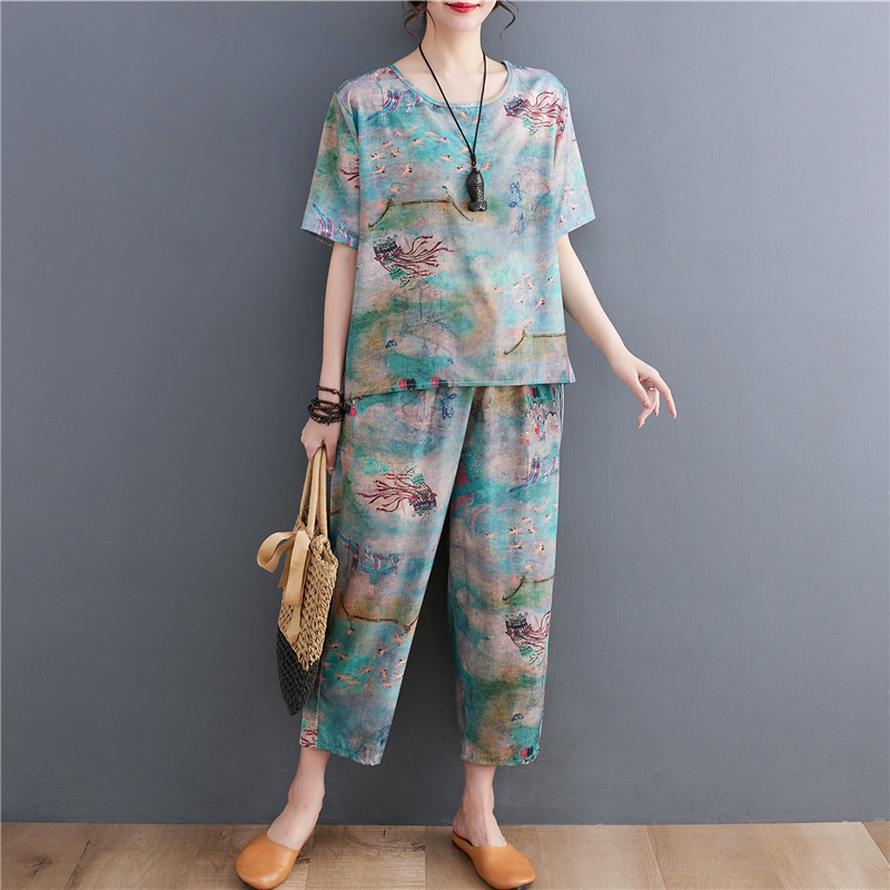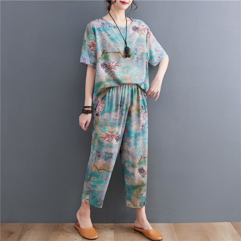 | nameOriginal | 2023 summer printed ethnic style slimming fashion loose plus size suit top western style casual two-piece suit |