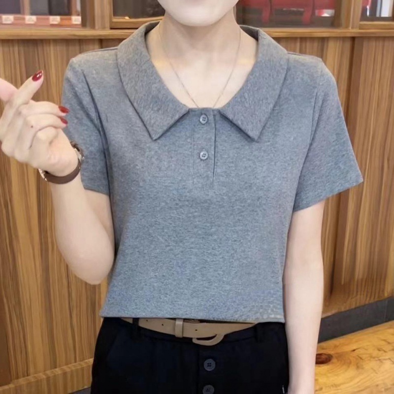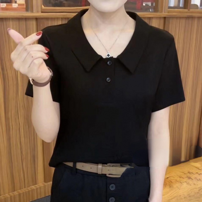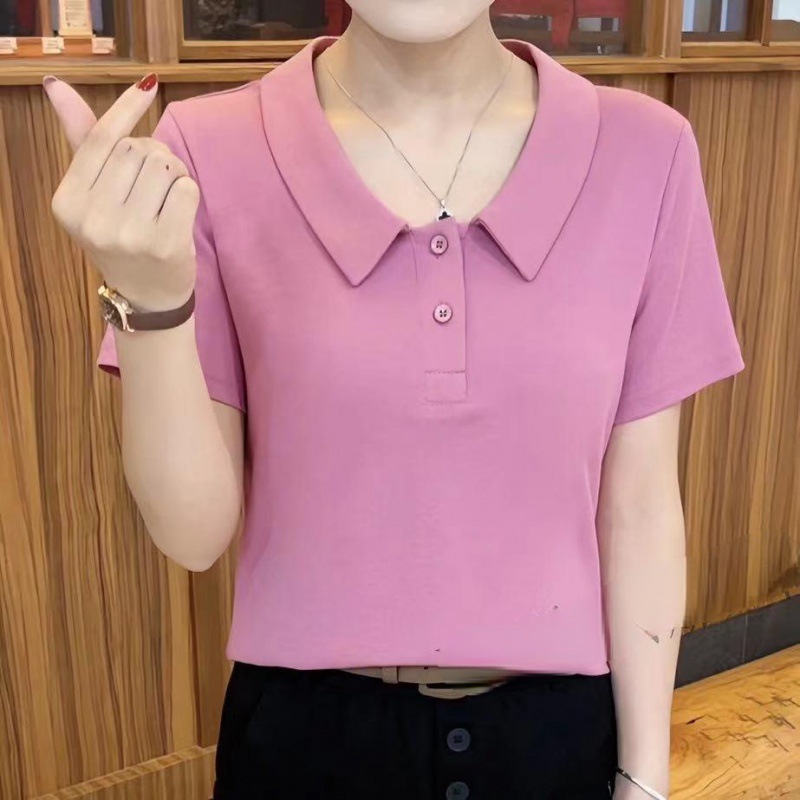 | nameOriginal | 2023 Summer Short-sleeved New Fashion Stylish Slim Solid Color Shirt Collar All-match Age-reducing Base Top T-shirt Women |