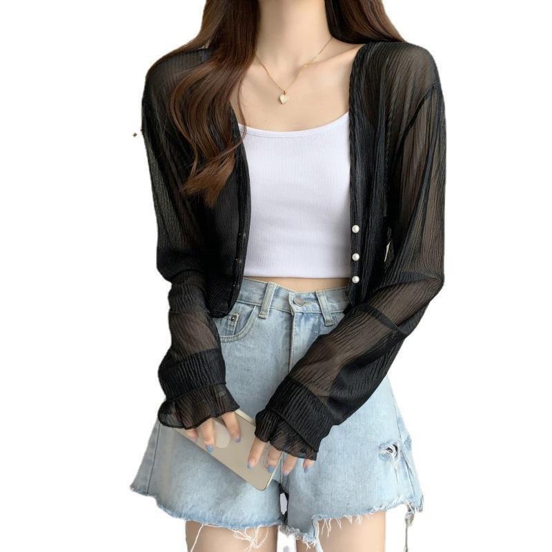 2023 Summer Sunscreen Long-sleeved Ice Silk Cardigan Thin Chiffon Shirt Sling Outer Blouse Air-conditioning Shirt Shawl Top