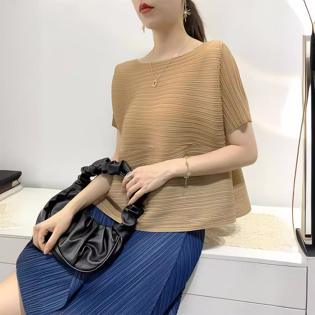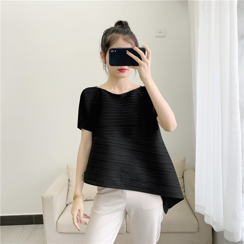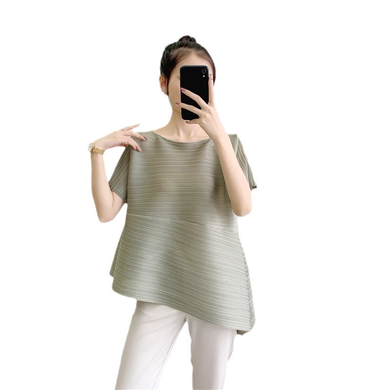 | nameOriginal | 2023 Summer T-shirt Pleated Top Women's Half-Folded Short-Sleeved Slimming Irregular Design Clothes Comfortable and Casual |