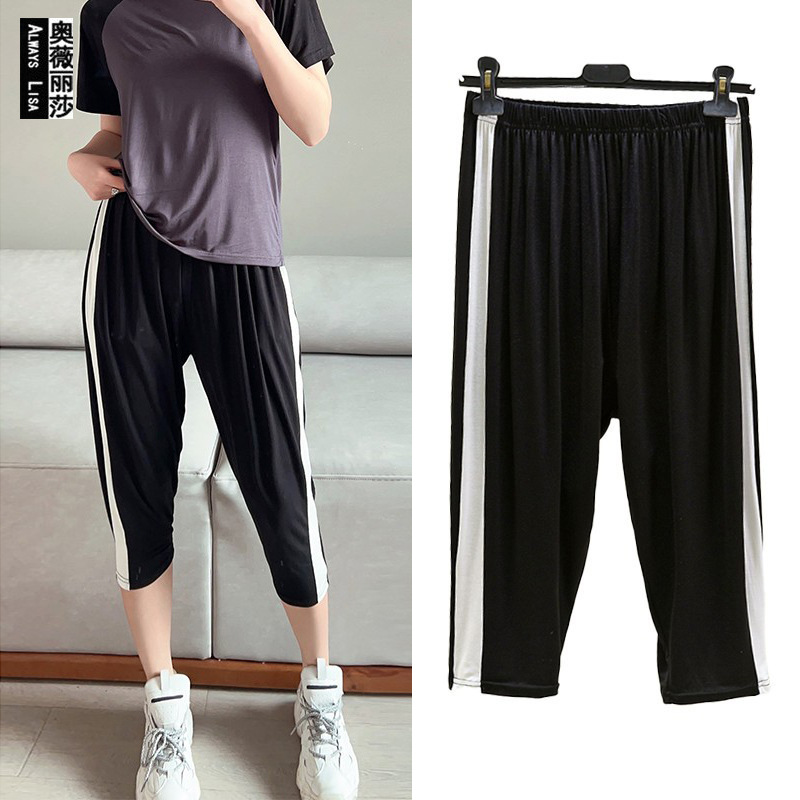 | nameOriginal | 2023 Summer Thin Modal Outer Wear Cropped Pants Women's Slim-Fit Side White Casual Pants Large Size Sports Pants High Waist |