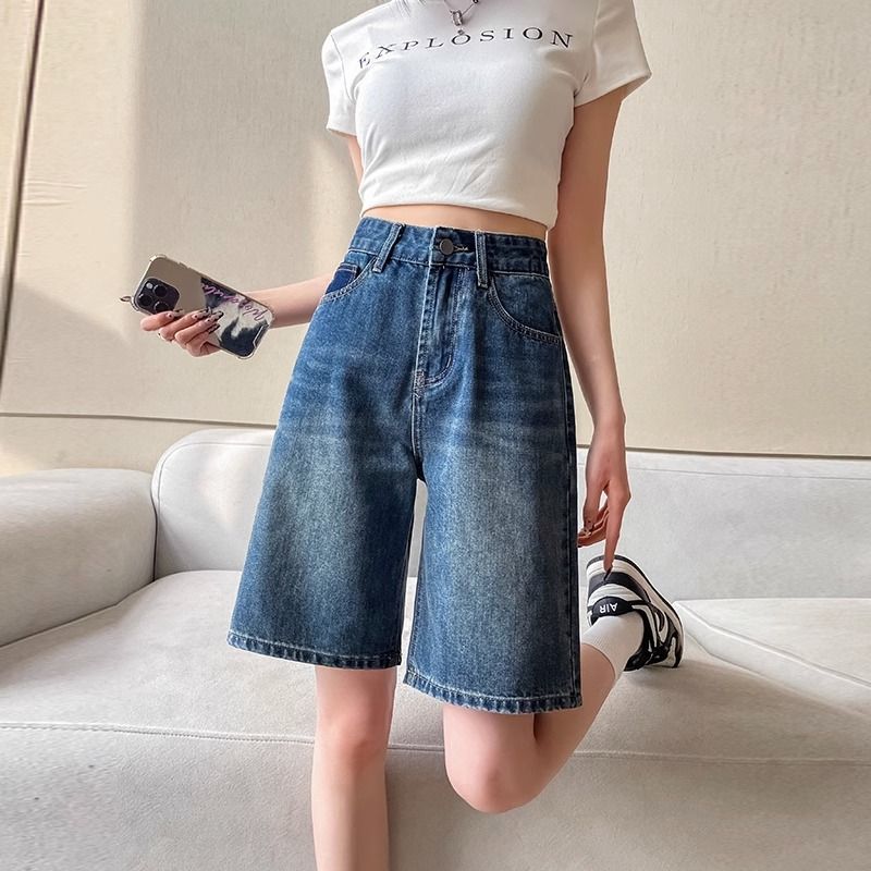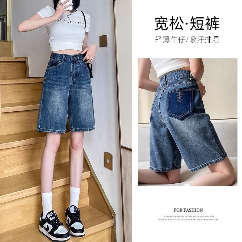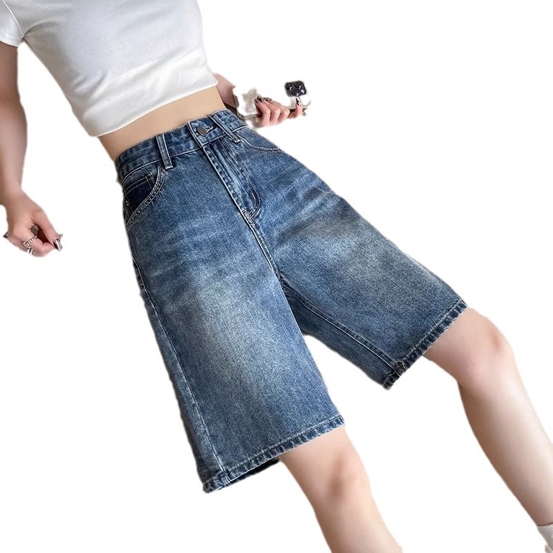 | nameOriginal | 2023 Summer thin retro five Denim shorts female high waist thin loose leg curl straight pants |