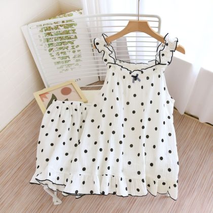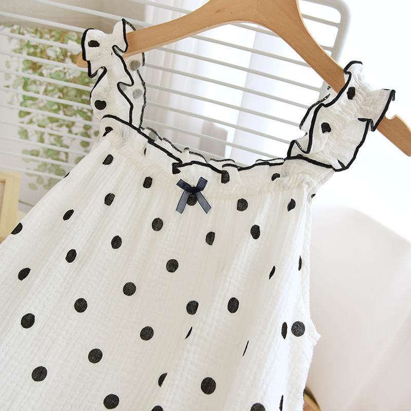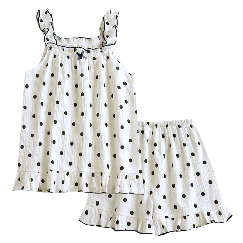 2023 Summer Wave Point Sling Short Cover Double Cotton Yarn Women’s Pajamas Lightweight Breathable Home Wear Factory Direct Supply