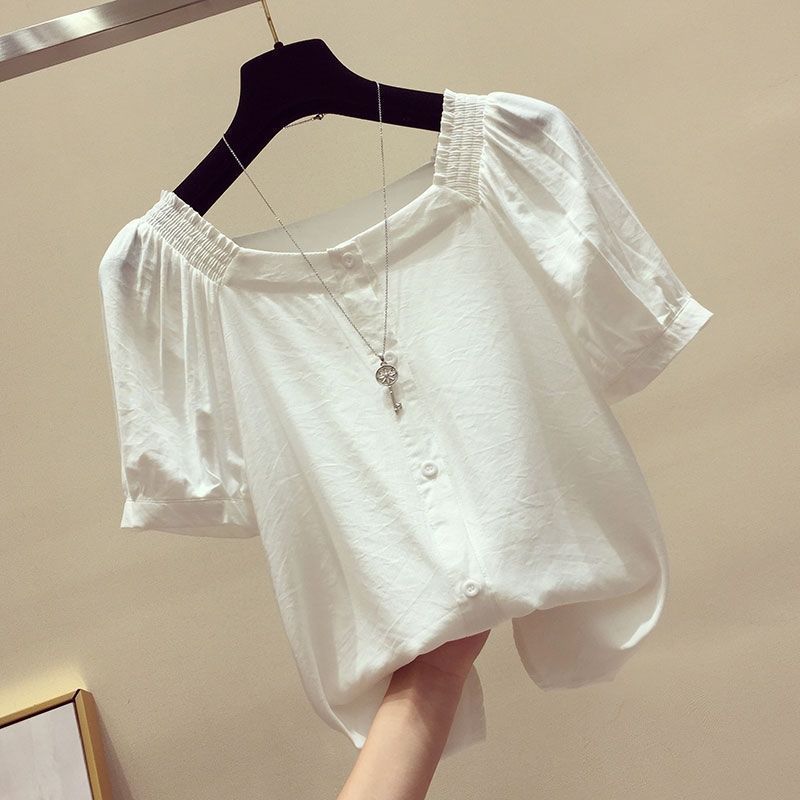 | nameOriginal | 2023 Summer Women's New Elegant All-match Belly-covering High-end Chiffon Shirt Trendy Short Top with Shoulder and Clavicle |