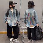 2023 trendy Korean Children’s denim jacket neutral jacket popular children’s jacket blue trench coat