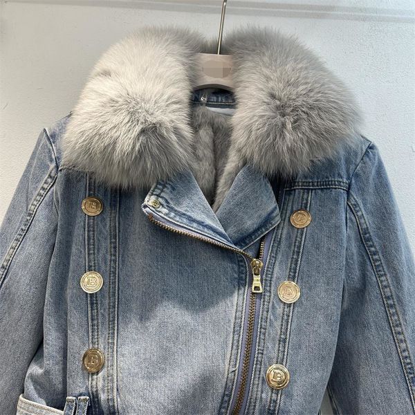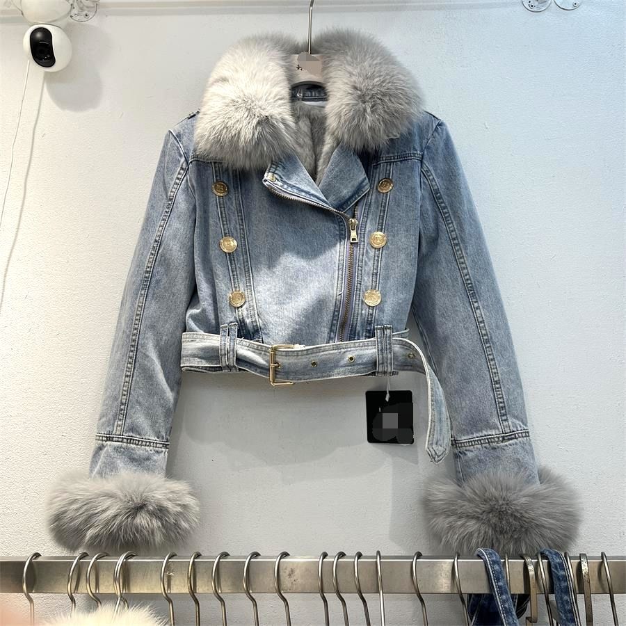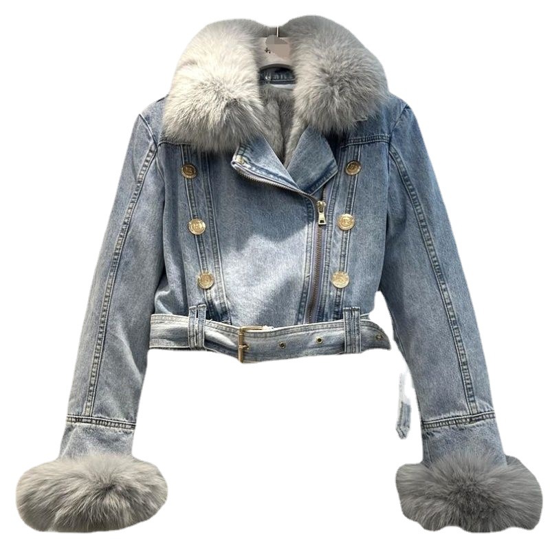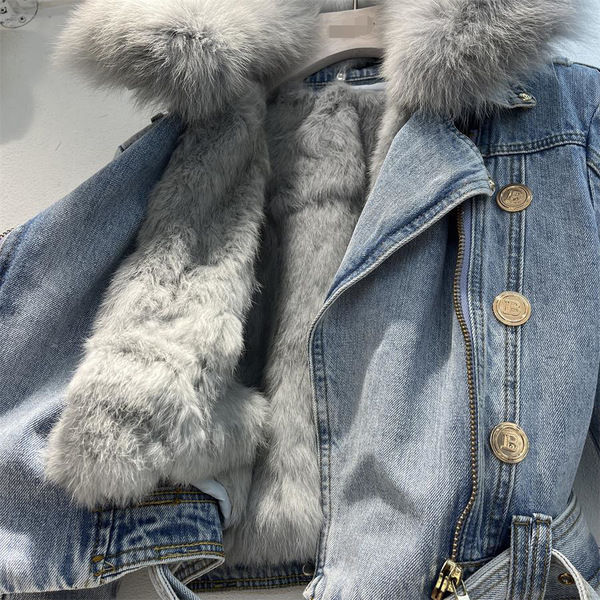 | nameOriginal | 2023 Winter fashion faux fox fur collar rabbit fur liner thickened warm Denim coat women's short jacket fashionable top |