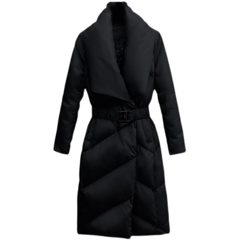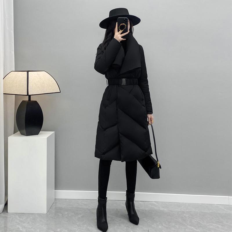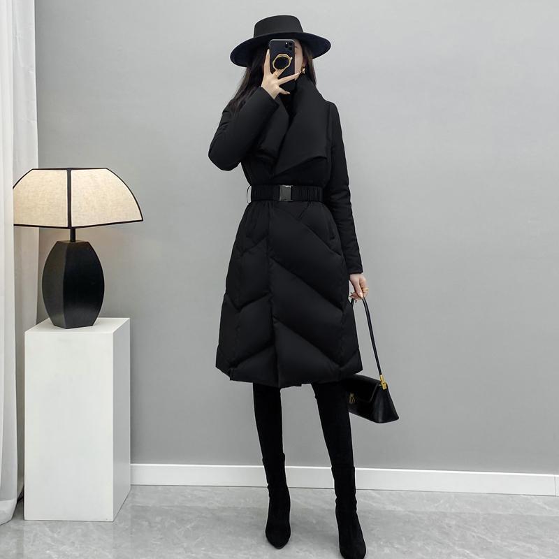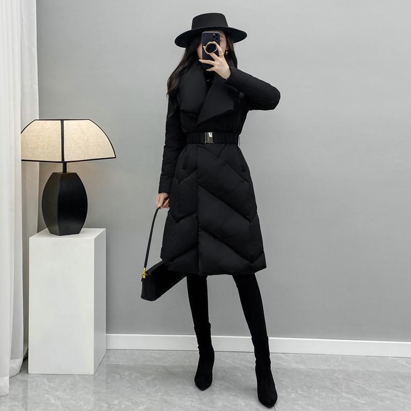 2023 Winter new black slim-fit over-the-knee mid-length down jacket women's small waist-tight white duck down jacket
