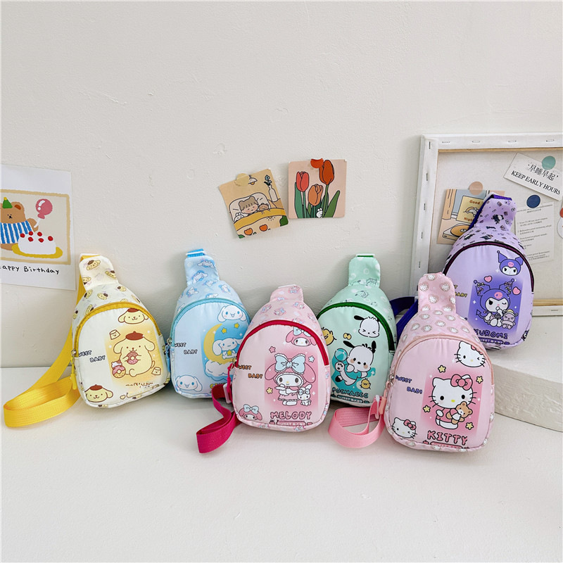 2023 Winter new children's bag Sanrio Oxford cloth shoulder crossbody chest bag men's and women's fashionable children's clothing matching bag