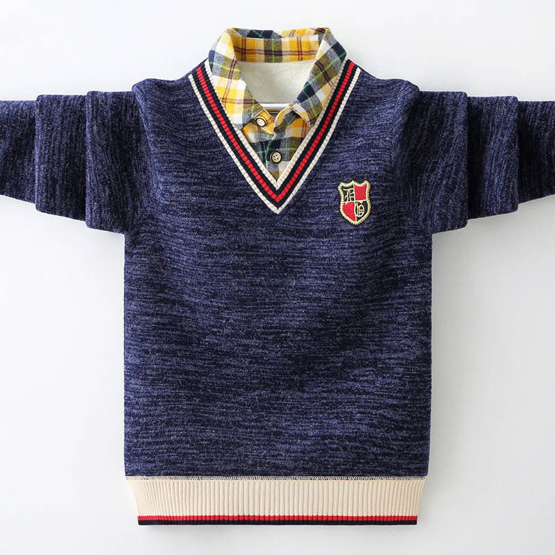 | nameOriginal | 2023 Winter new CUHK boys plus velvet padded fake two-piece sweater pullover one-piece velvet fashion sweater |