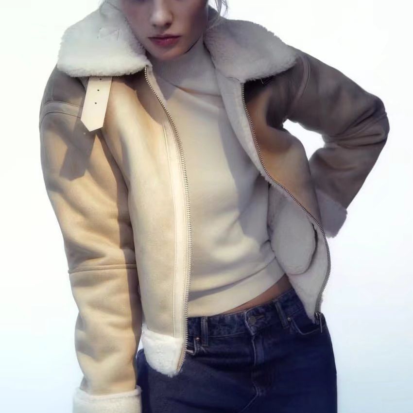 2023 Winter New European and American Cross-border Women’s Street Fashion Double-sided Short Jacket Fur Casual Jacket