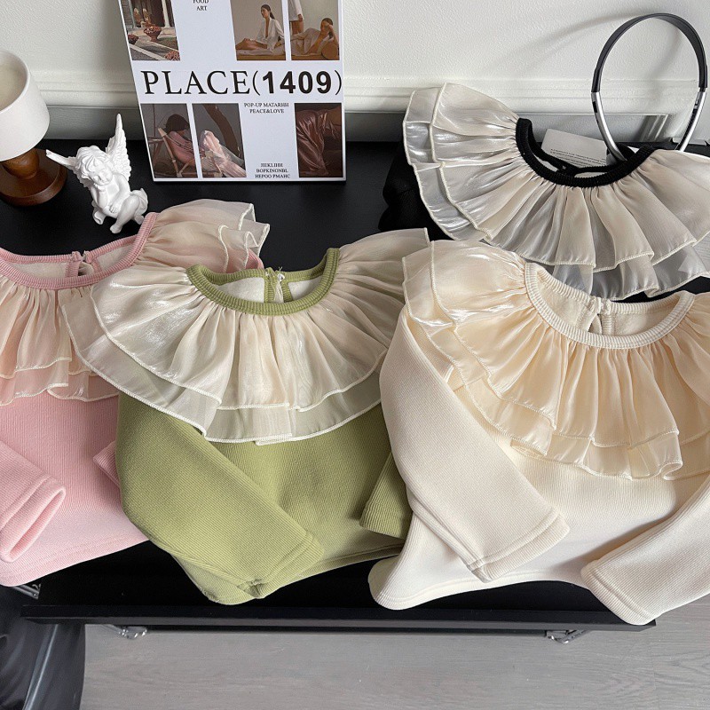 | nameOriginal | 2023 winter new Korean girls with wooden ear collar baby long sleeve fleece-lined bottoming shirt children's clothing live supply |