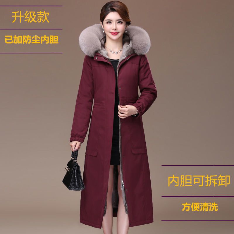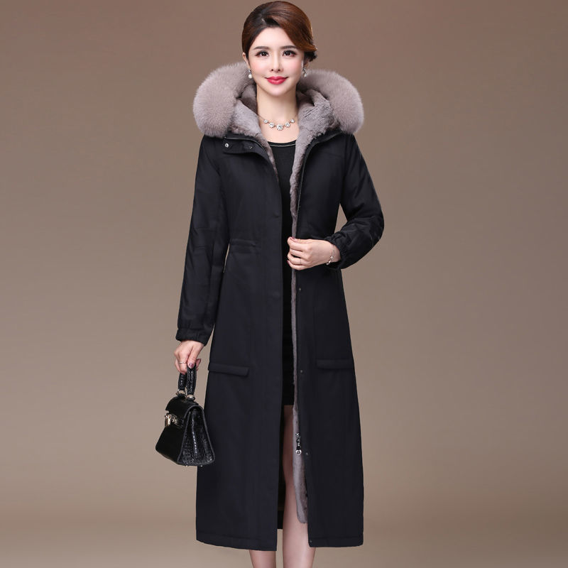 2023 Winter New parka women's fox fur collar detachable Rex rabbit fur liner long thickened faux fur coat