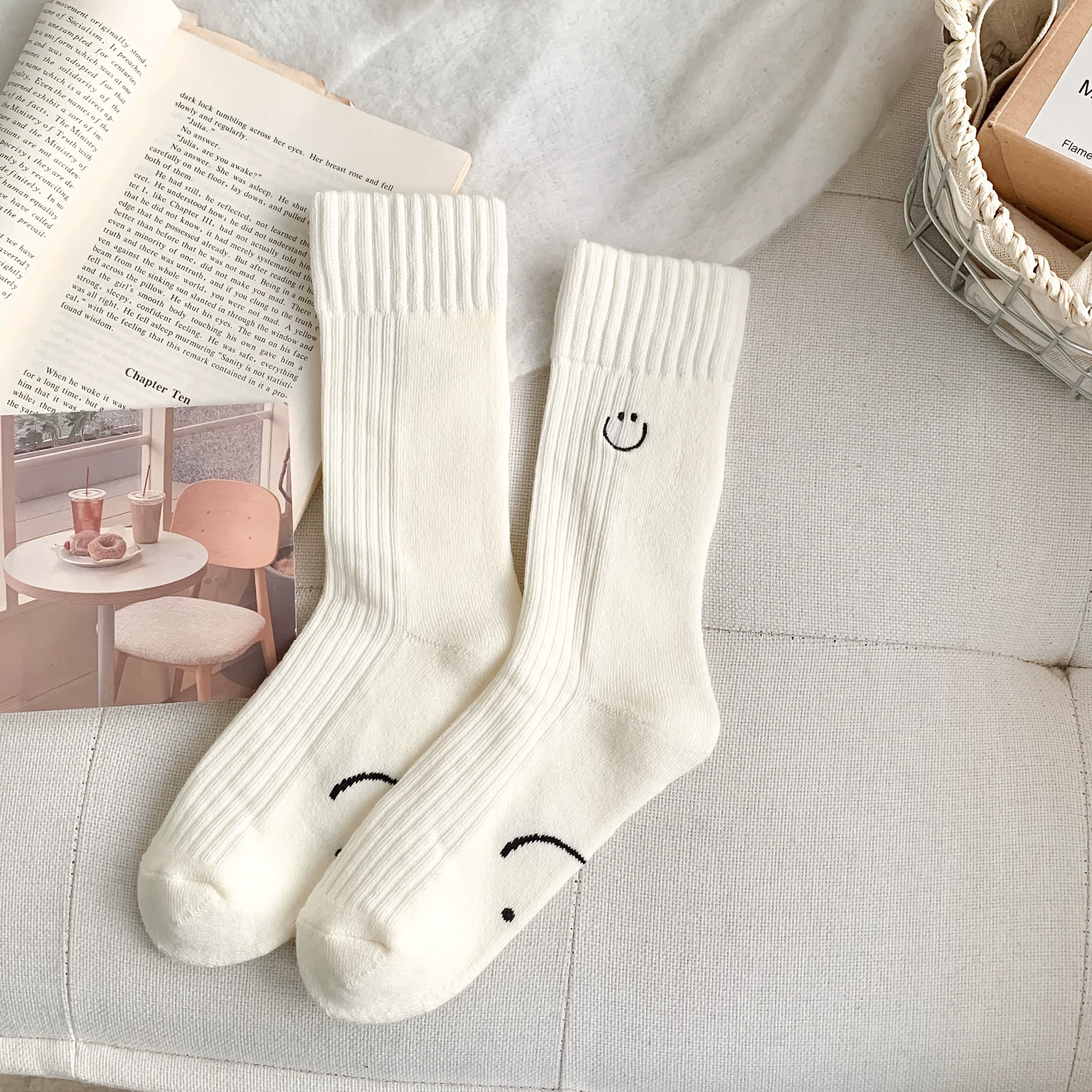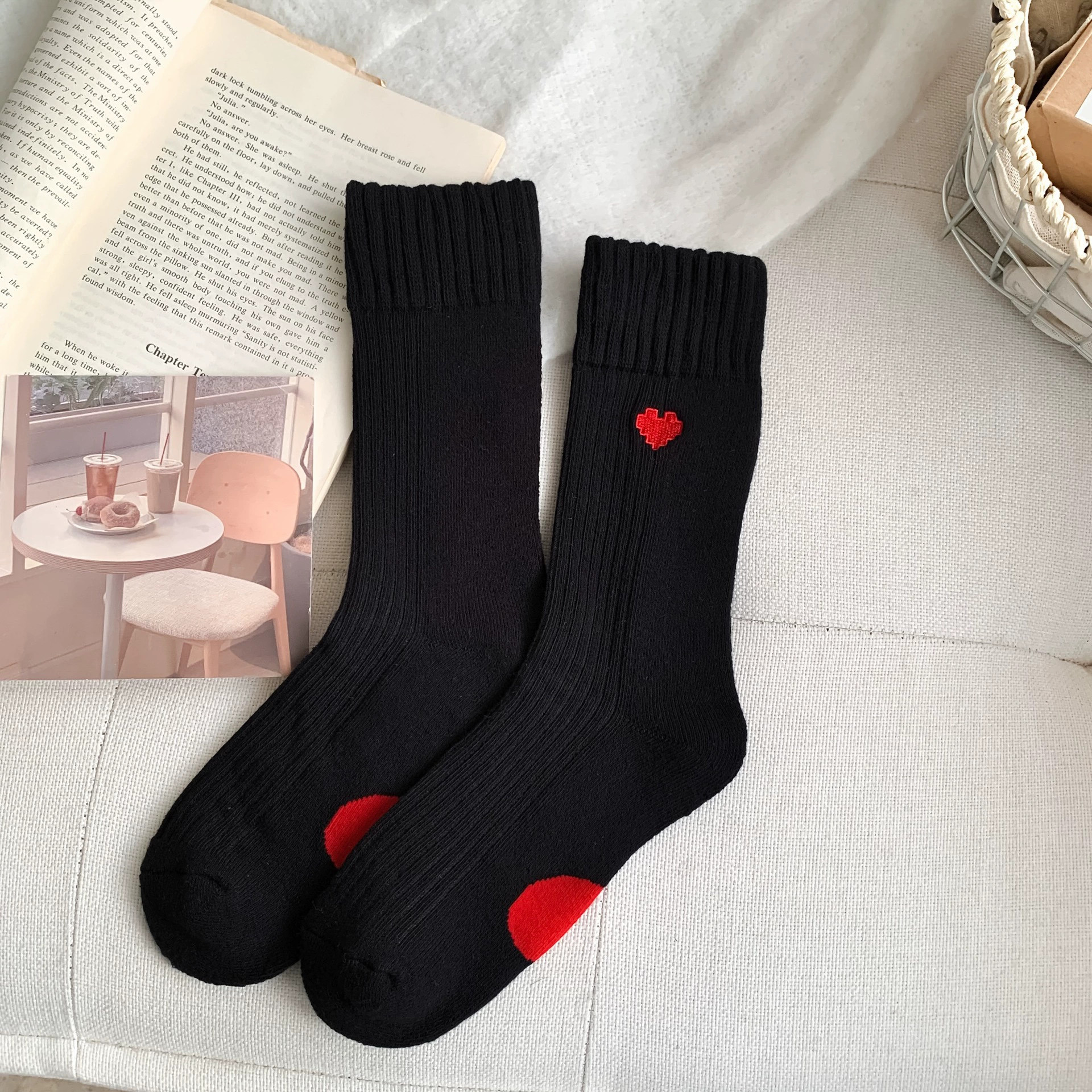 | nameOriginal | 2023 winter new products Korean ins style embroidered love smile thickened terry socks warm simple mid-calf socks |