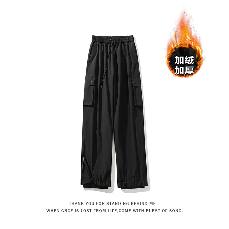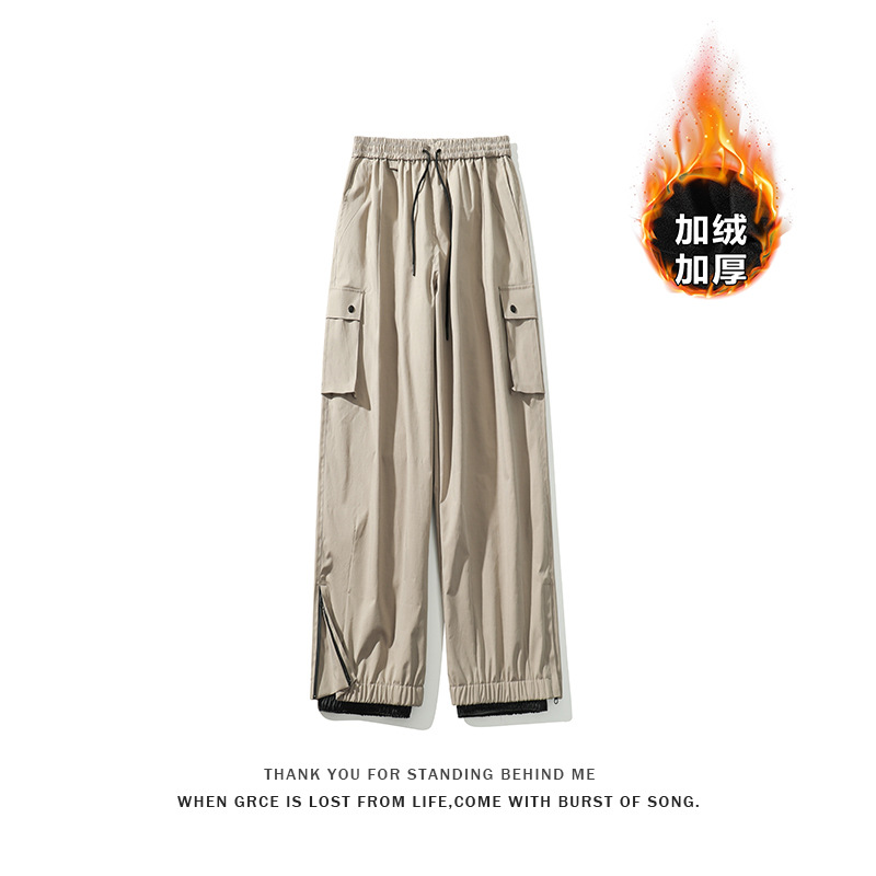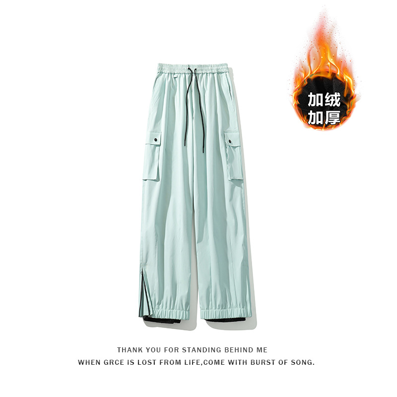 2023 Winter new ski pants men's loose fleece-lined thick warm plus size outdoor casual pants