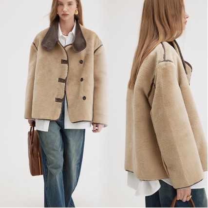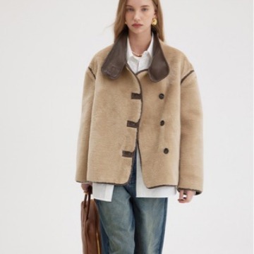 | nameOriginal | 2023 Winter new stand collar faux fur coat women's contrast color stitching casual texture coat top |