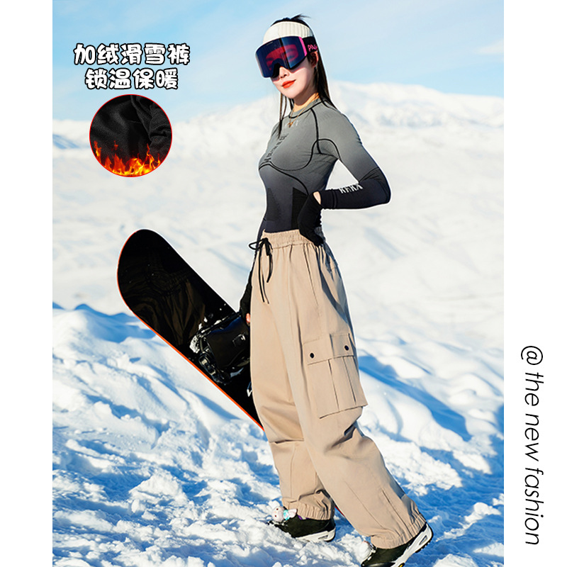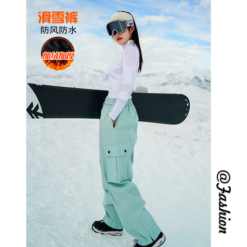 | nameOriginal | 2023 Winter new waterproof fleece-lined warm ski pants men's and women's same climbing pants plus size loose warm trousers |