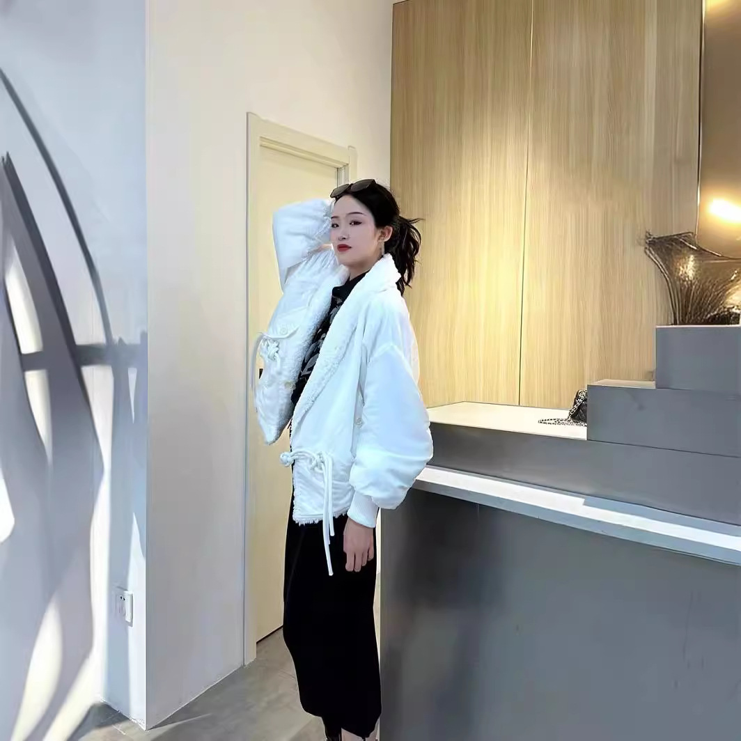 | nameOriginal | 2023 Winter new women's national style cotton-padded coat women's Green buckle loose fleece-lined jacket coat |