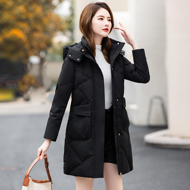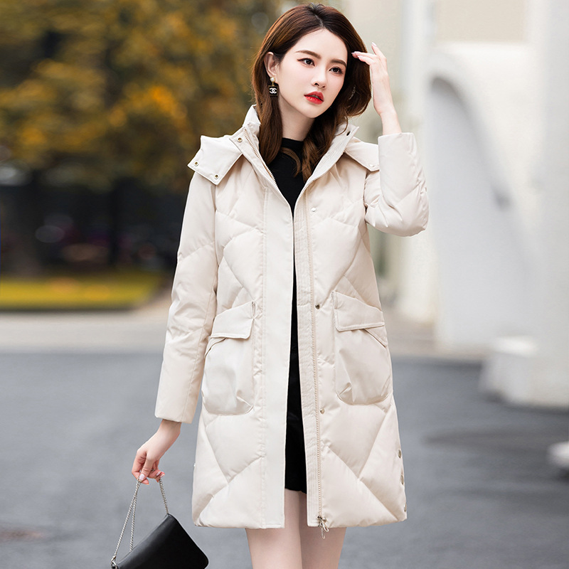 | nameOriginal | 2023 Winter Popular New Mid-length White Duck Down Hooded Down Jacket Women's Slimming Warm Large Down Jacket |