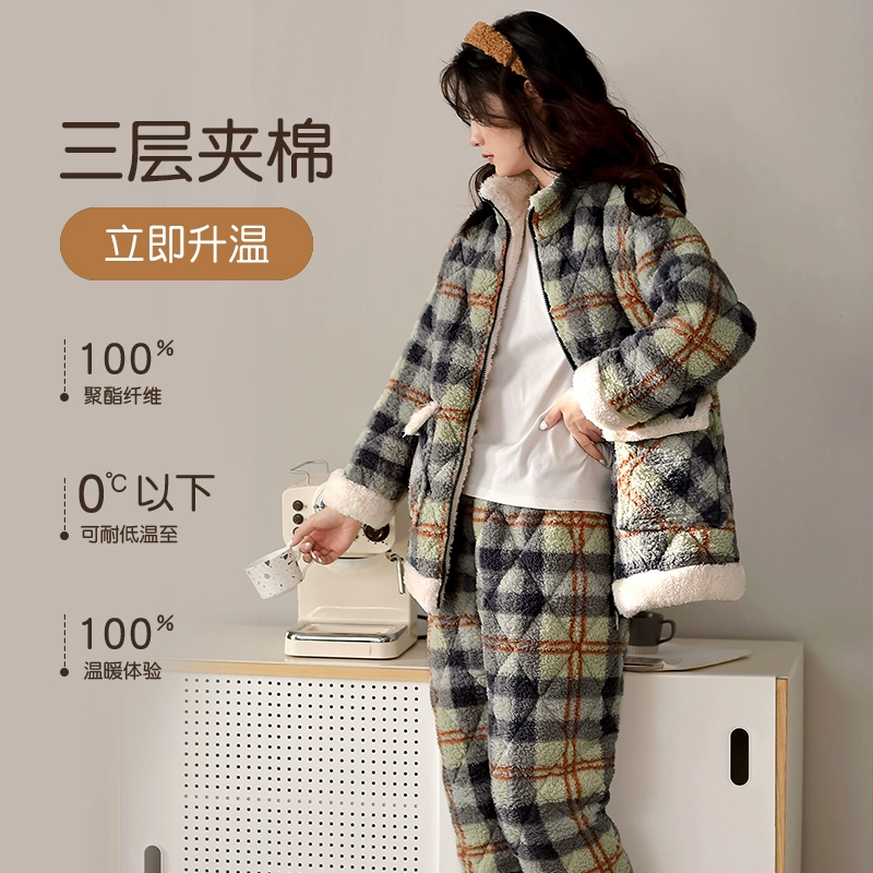 | nameOriginal | 2023 winter stand-up collar pajamas for women, coral velvet quilted three-layer thickened plus velvet winter women's cotton-padded jacket home clothes |